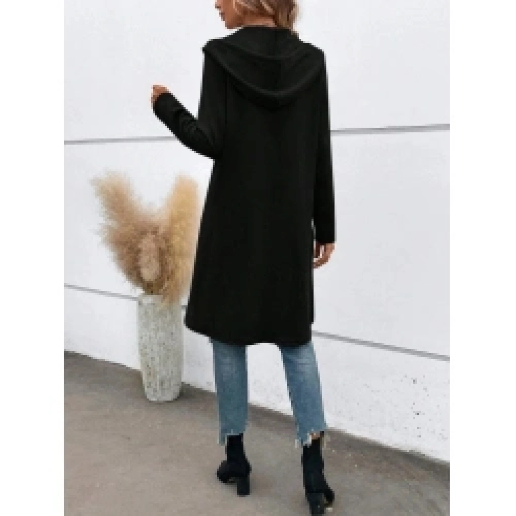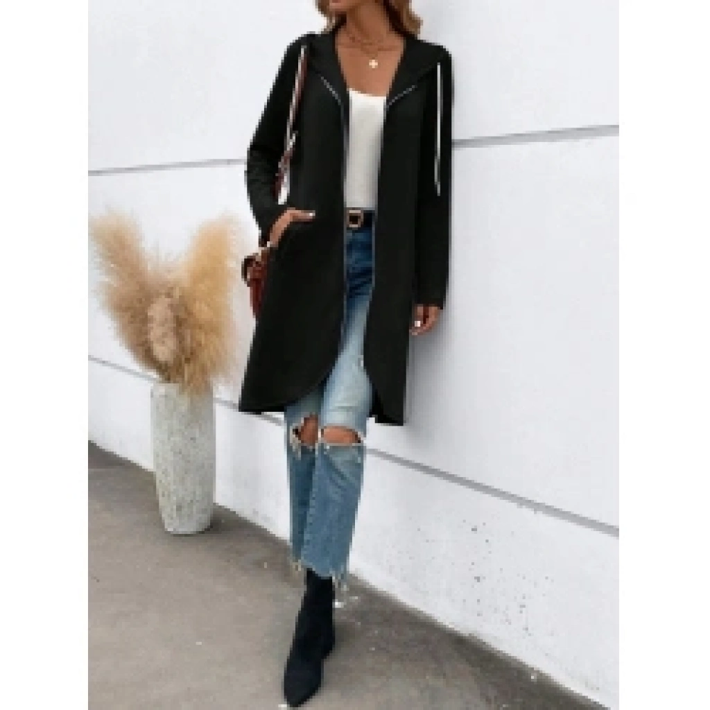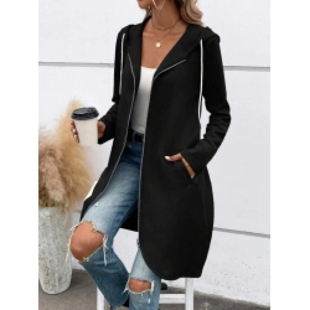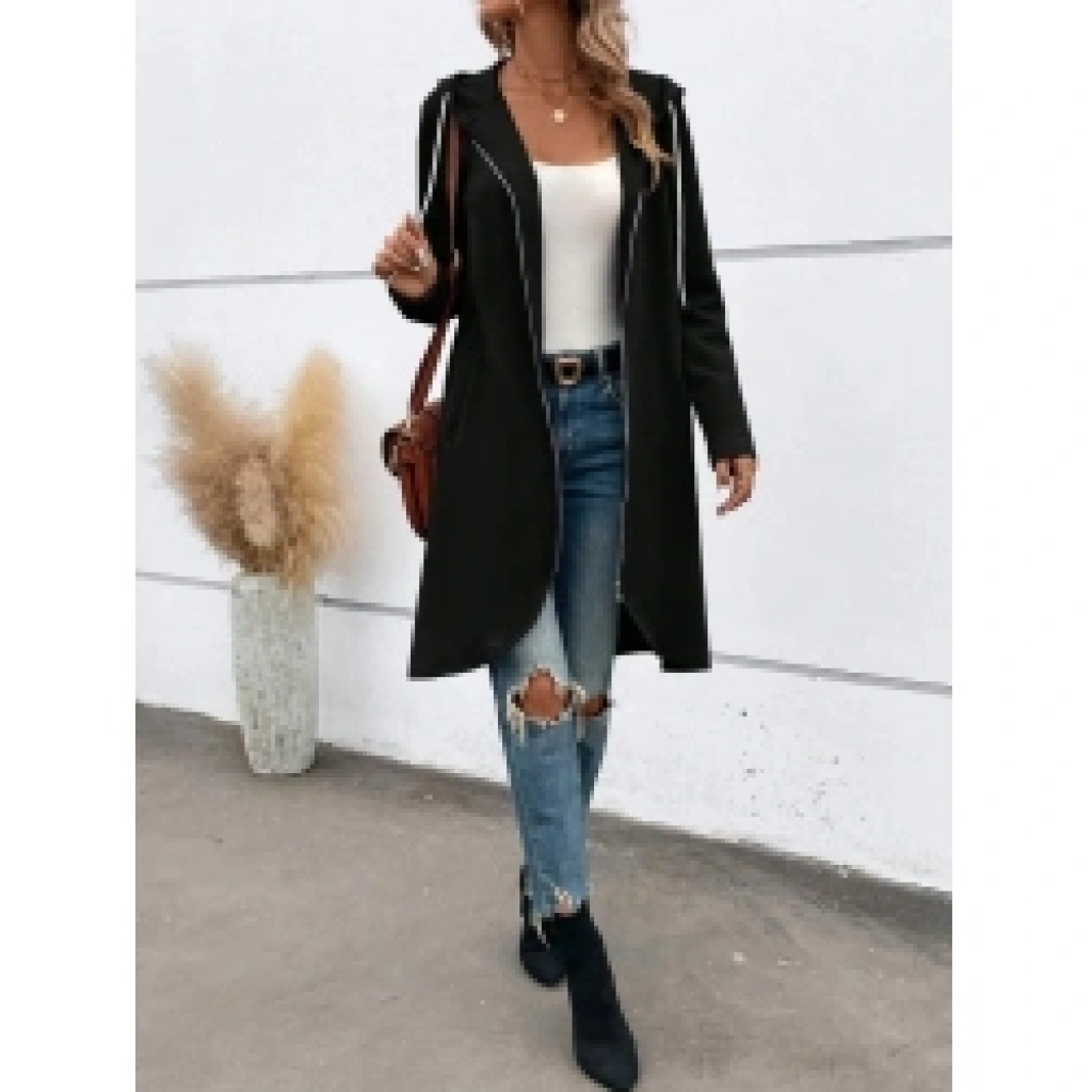 Kadın Uzun Kollu Kapşonlu önden Fermuarlı Midi Dalgıç Ceket
