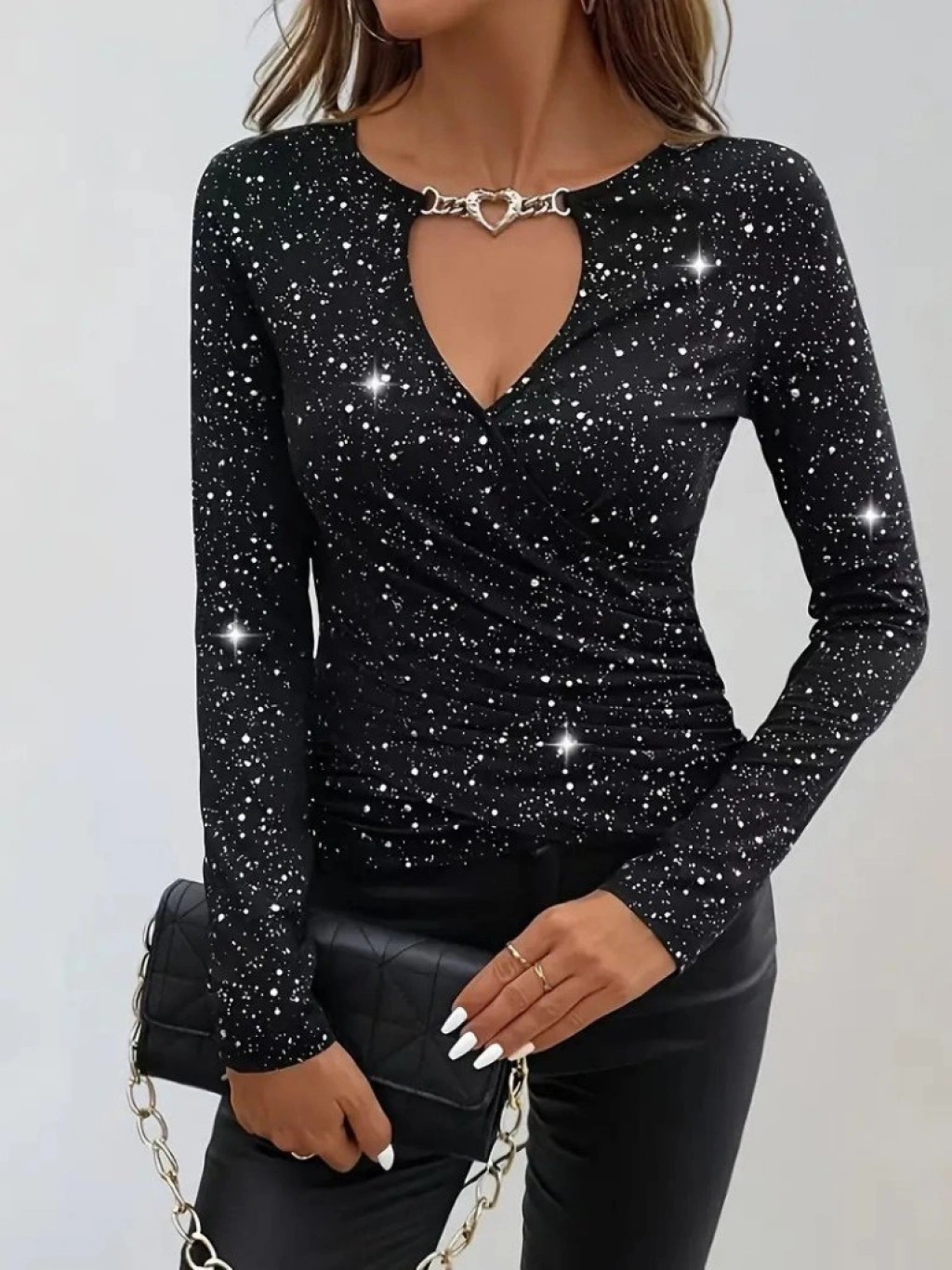 Kadın Uzun Kollu Kruvaze Yakalı Aksesuarlı Dalgıç Bluz