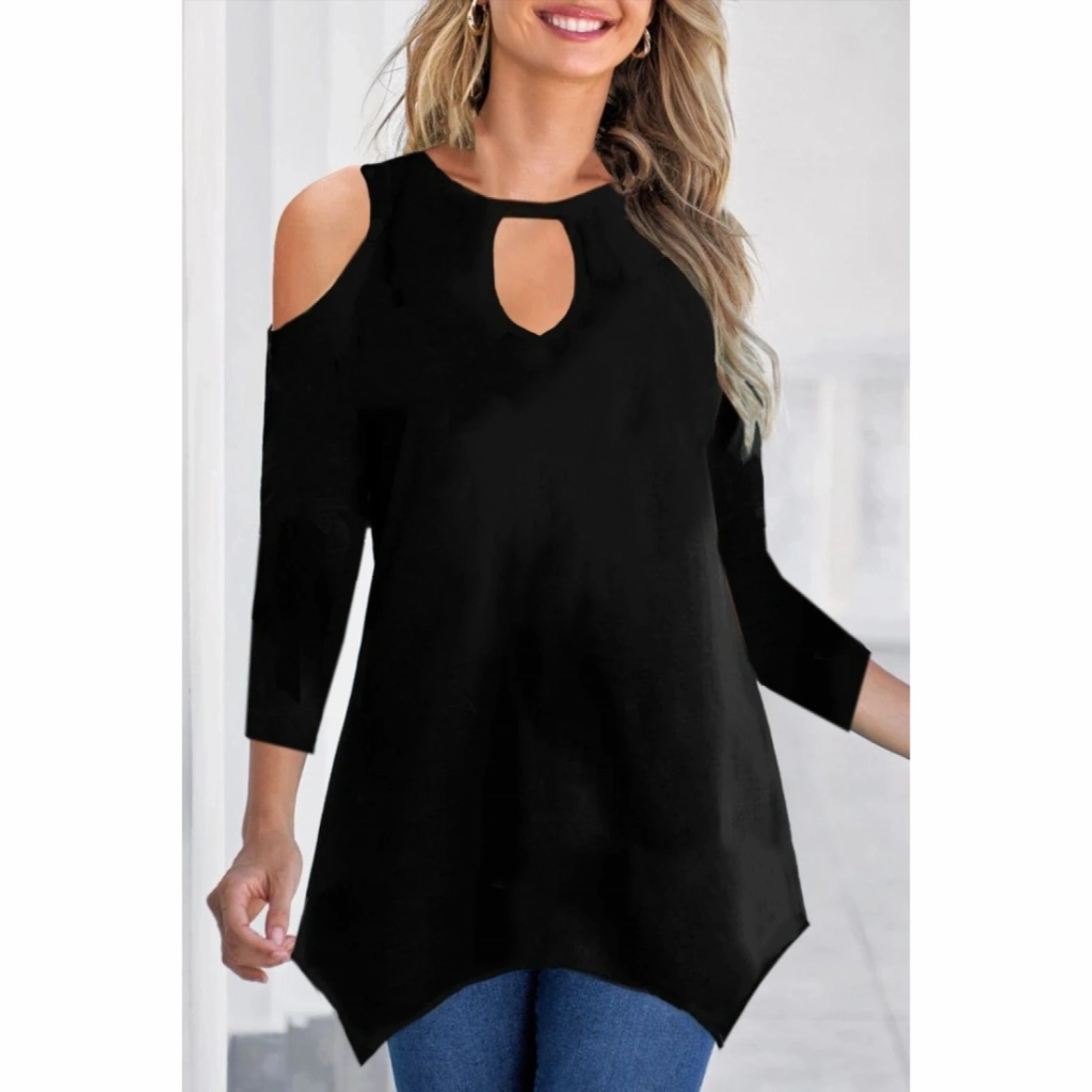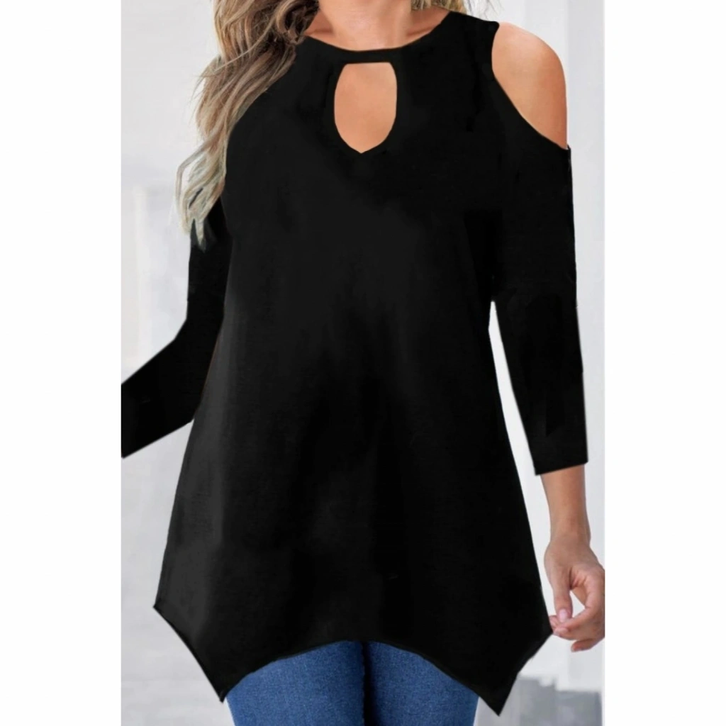 Kadın Uzun Kollu Omuz Ve Göğüs Dekolte Detay Viskon Bluz