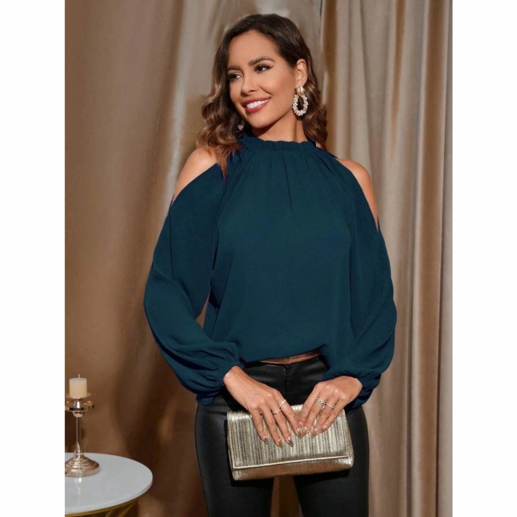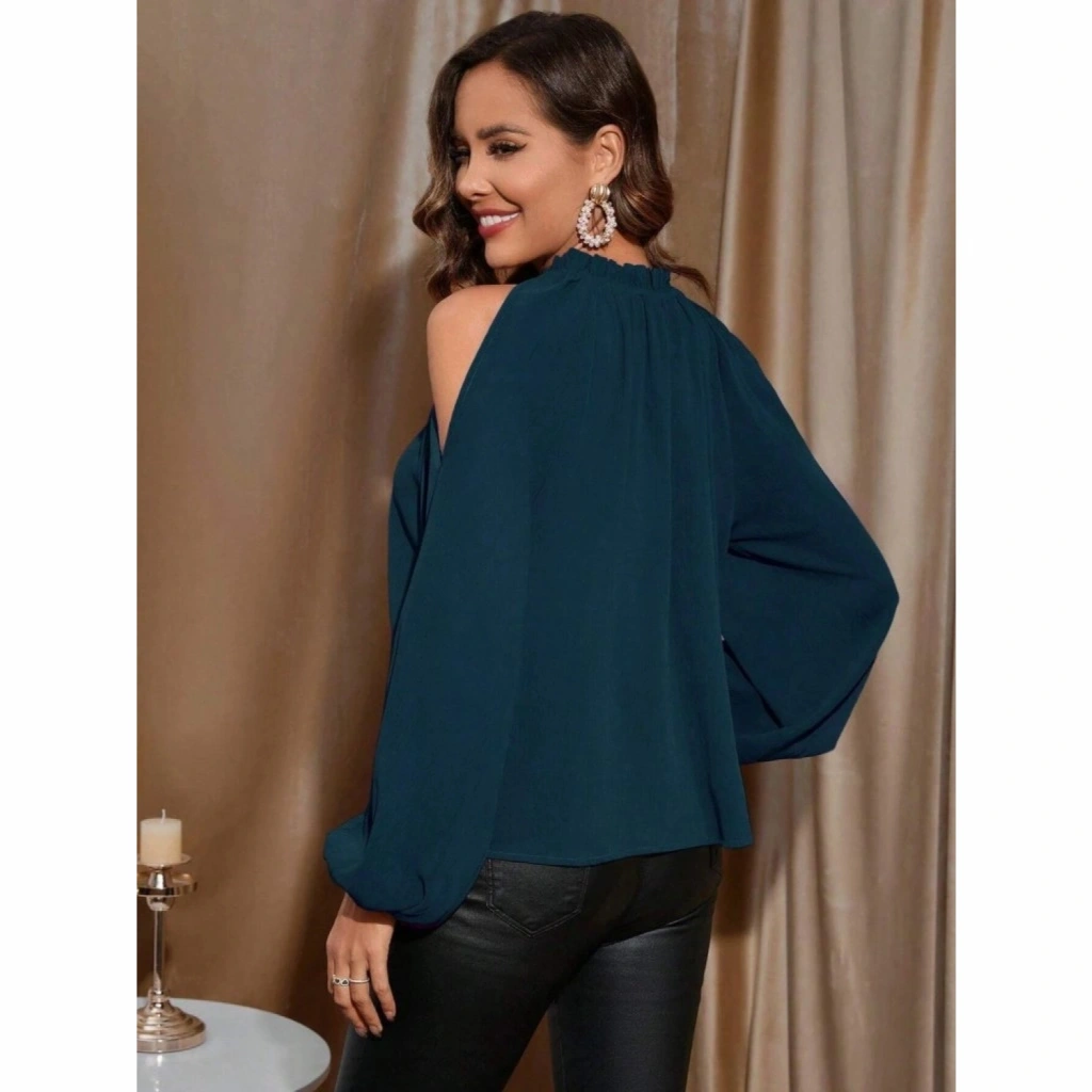 Kadın Uzun Kollu Omuzlardan Açık Sandy Bluz