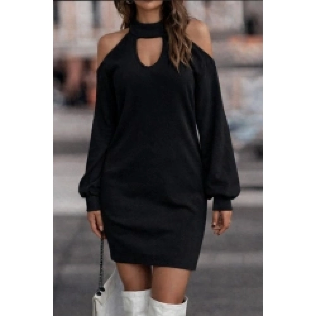 Kadın Uzun Kollu Omuzları Açık Boyundan şerit Detay Kaşkorse Elbise