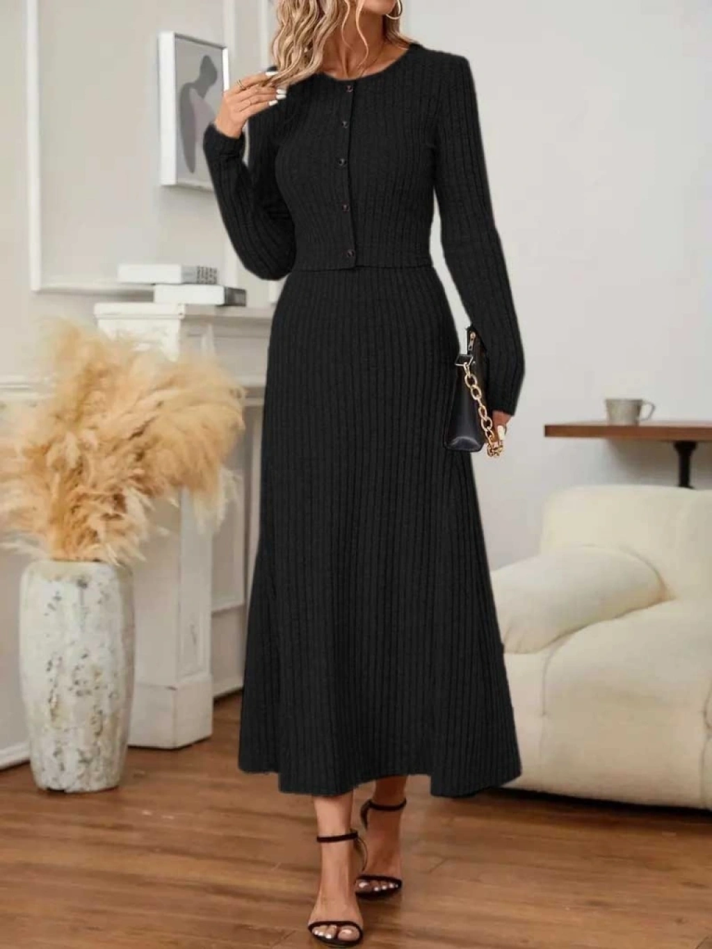 Kadın Uzun Kollu önden Düğmeli Bluz Ve Yüksek Bel A Kesim Uzun Etek şardonlu Kaşkorse Ikili Takım