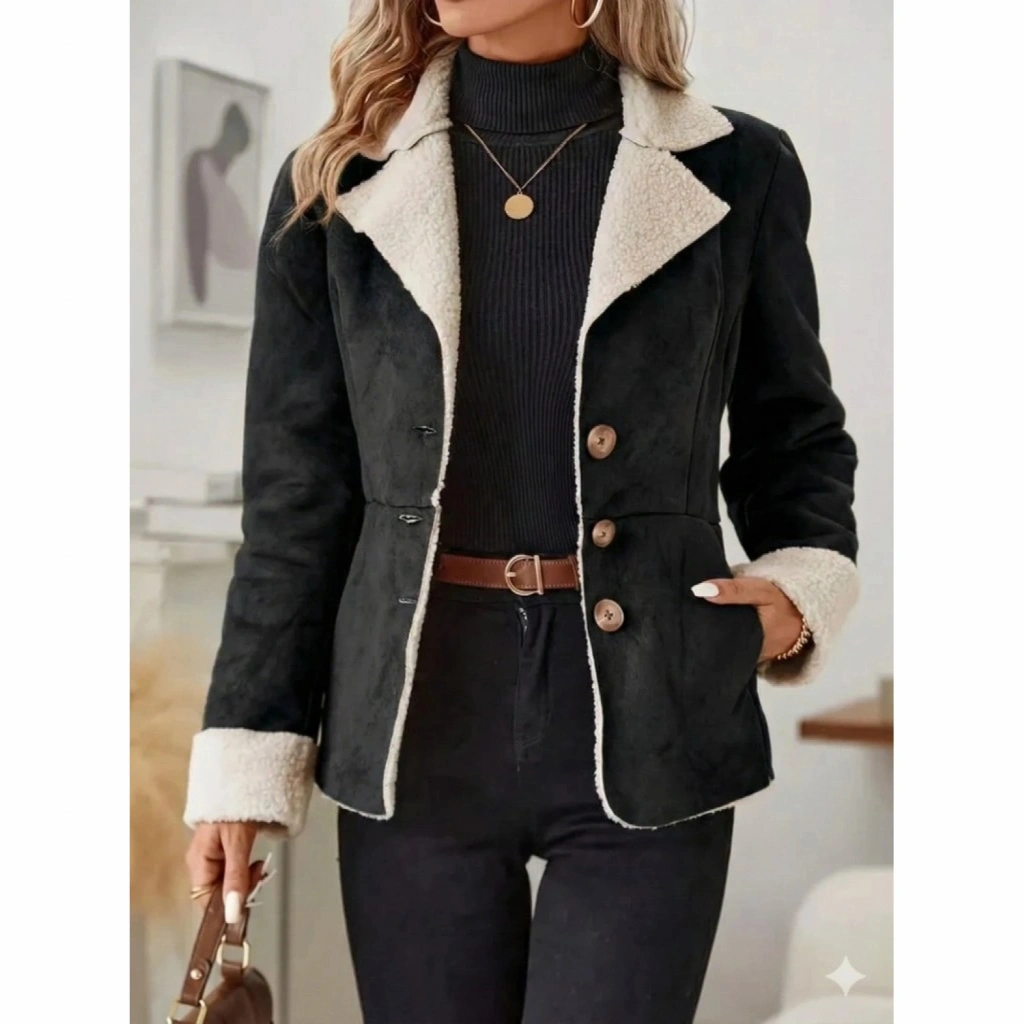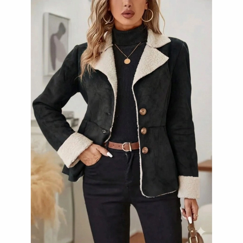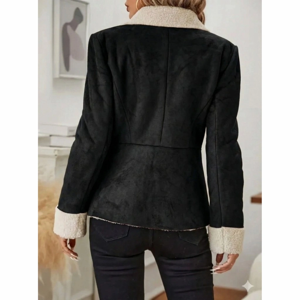 Kadın Uzun Kollu önden Düğmeli Cep Detaylı Kısa Süet Ceket