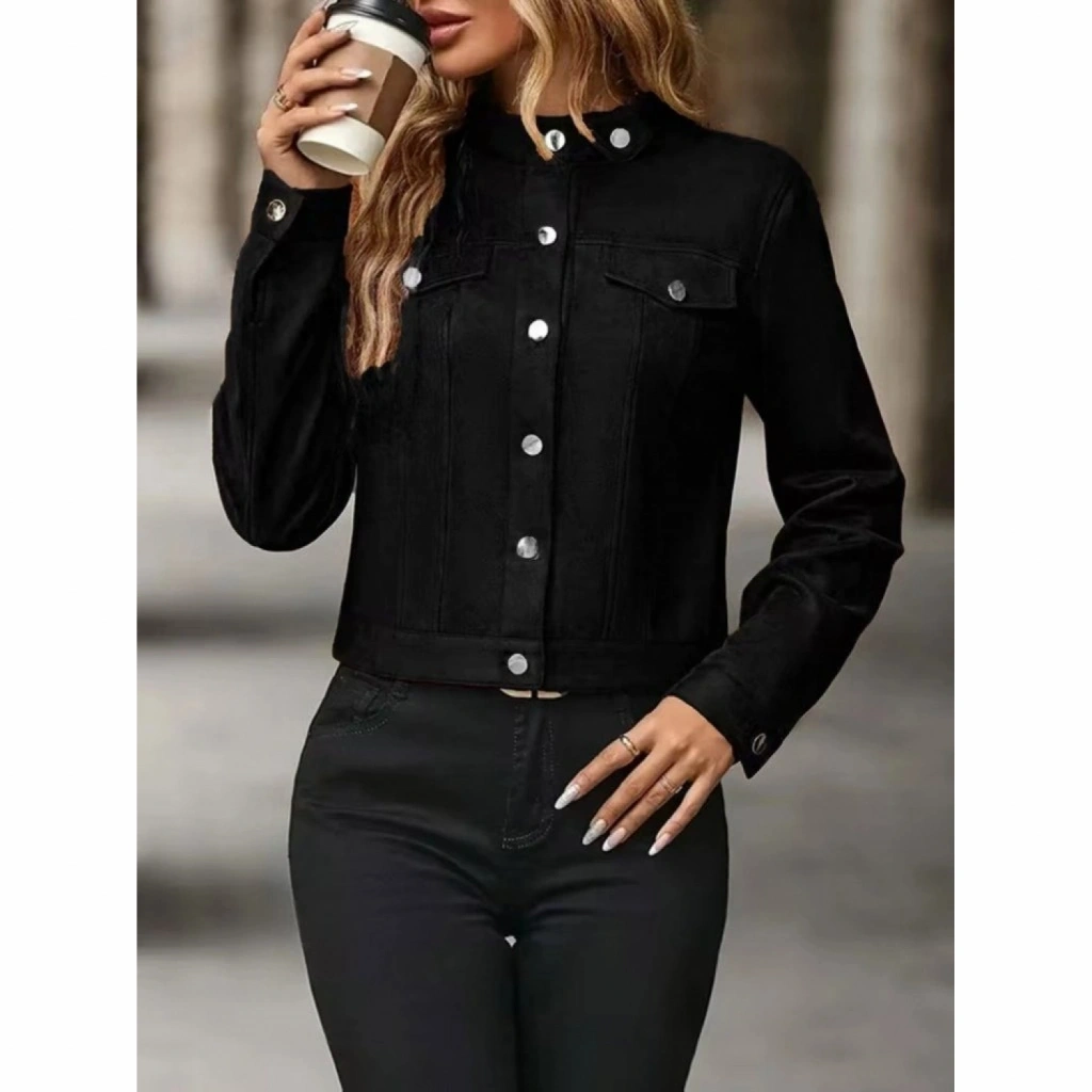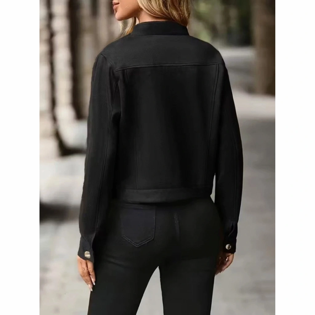 Kadın Uzun Kollu önden Düğmeli Kısa Süet Ceket