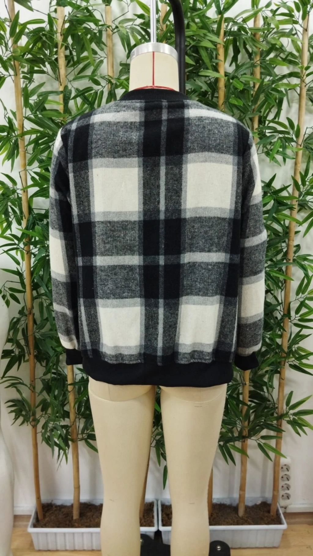 Kadın Uzun Kollu önden Fermuarlı Ekose Desenli Ceket