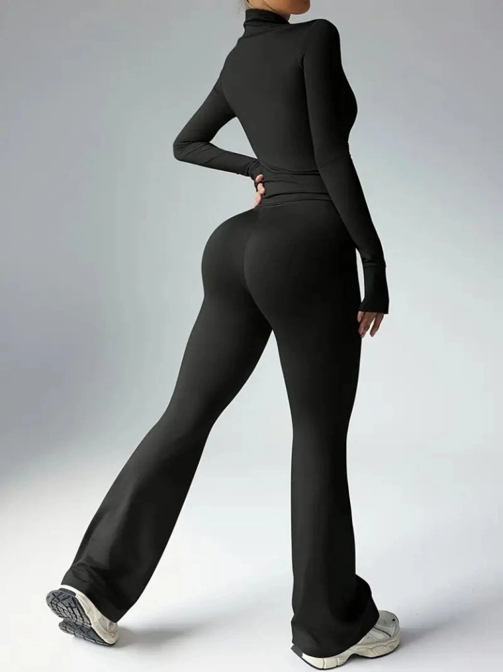 Kadın Uzun Kollu önden Fermuarlı Kısa Dalgıç Bluz Ve Pantolon Ikili Takım