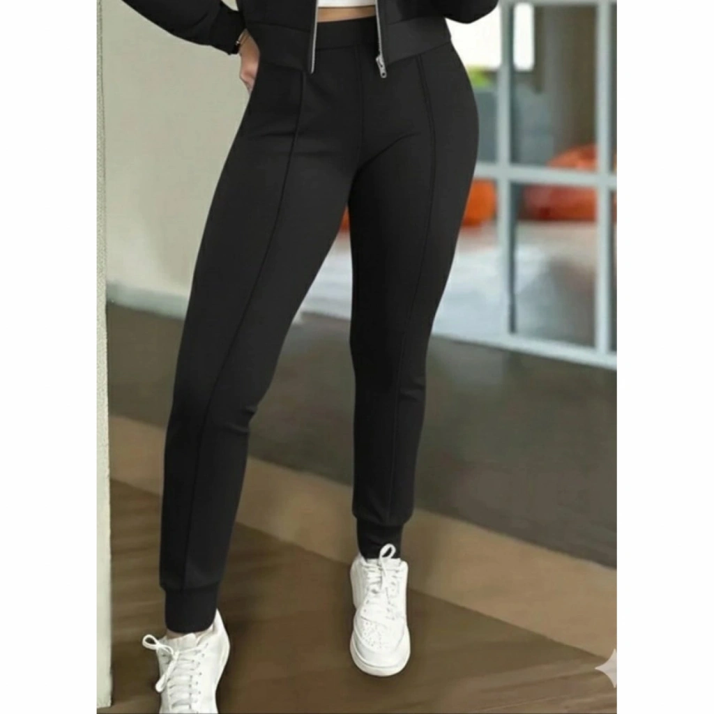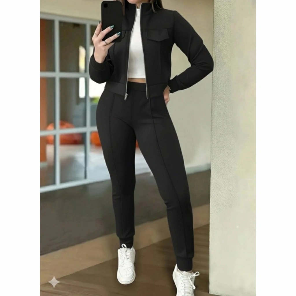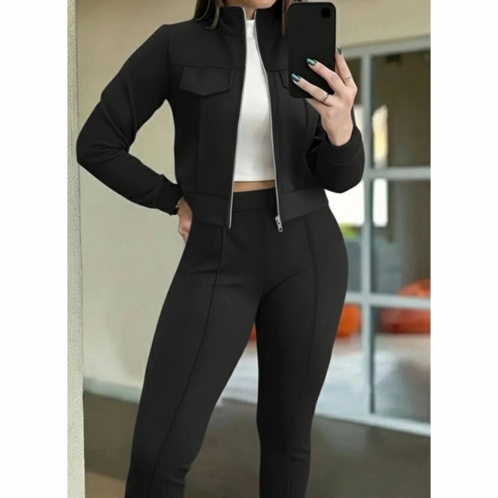 Kadın Uzun Kollu önden Fermuarlı Kısa Modal Ceket Ve Pantolon Ikili Takım