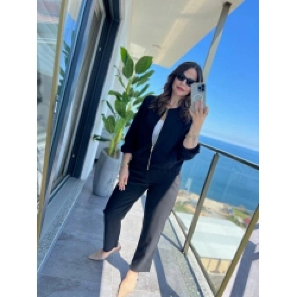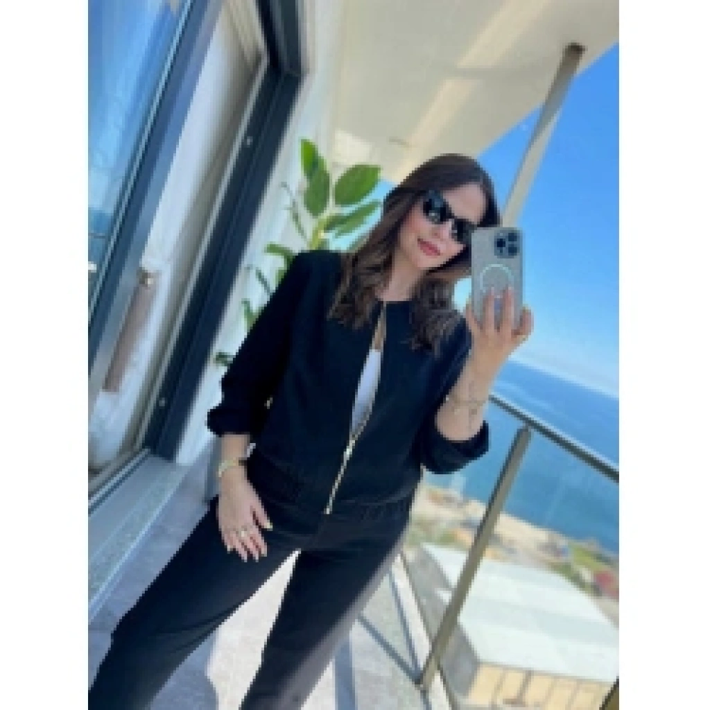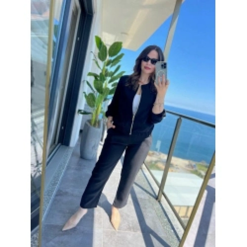 Kadın Uzun Kollu önden Fermuarlı Modal Ceket Ve Pantolon Ikili Takım