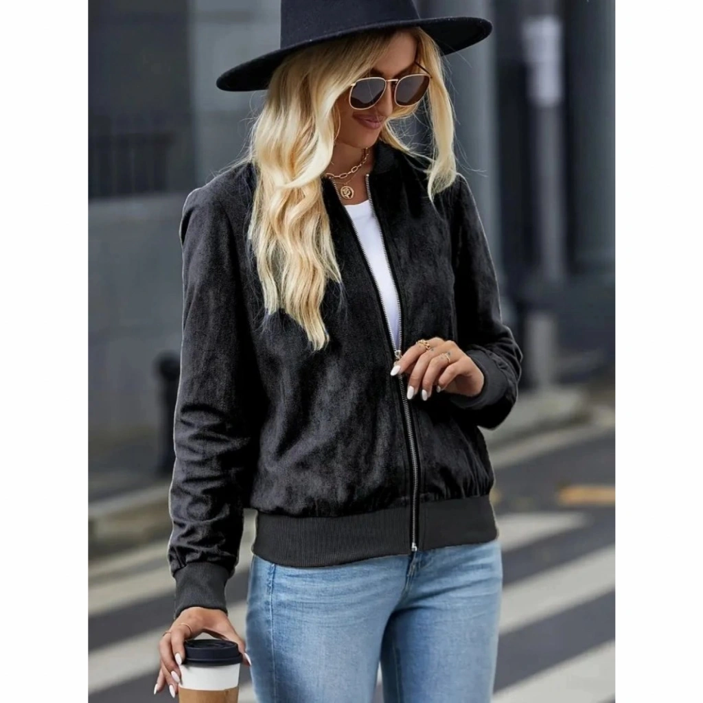 Kadın Uzun Kollu önden Fermuarlı Süet Ceket