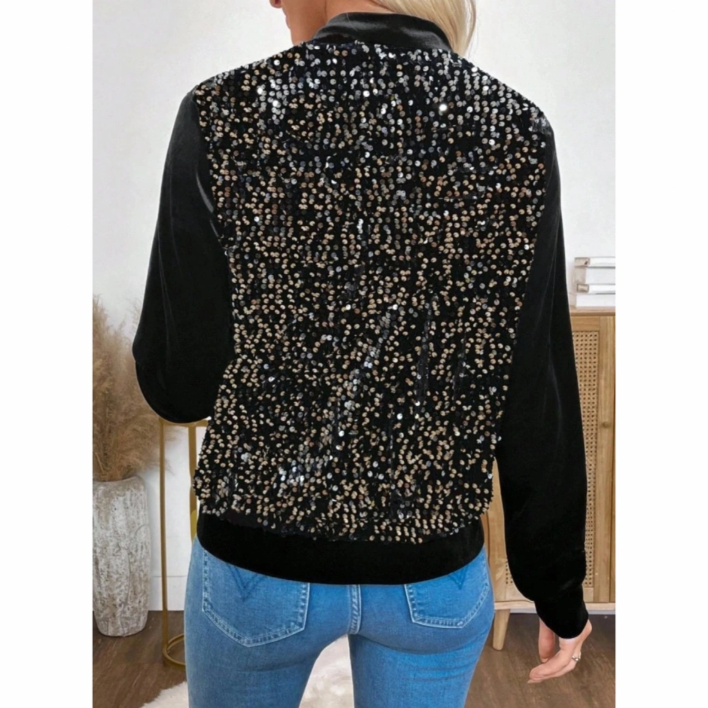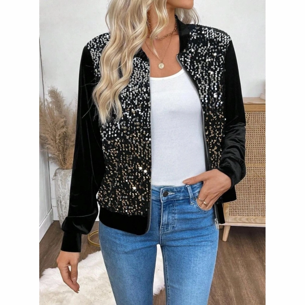 Kadın Uzun Kollu önü Açık Fermuarlı Pulpayetli Kadife Ceket