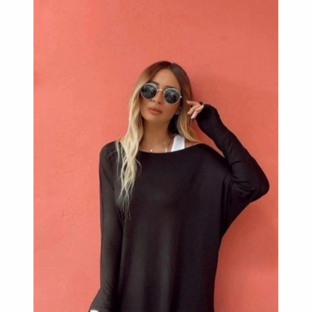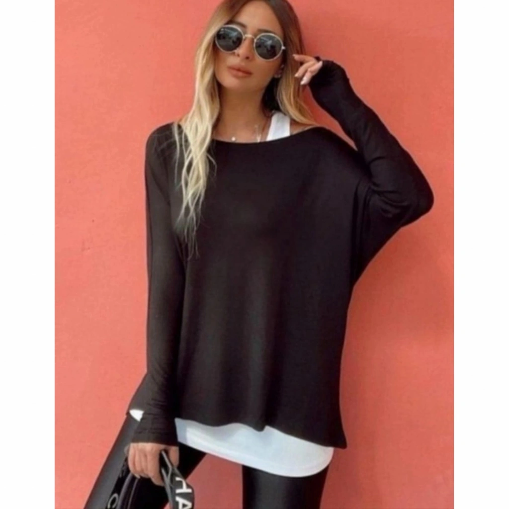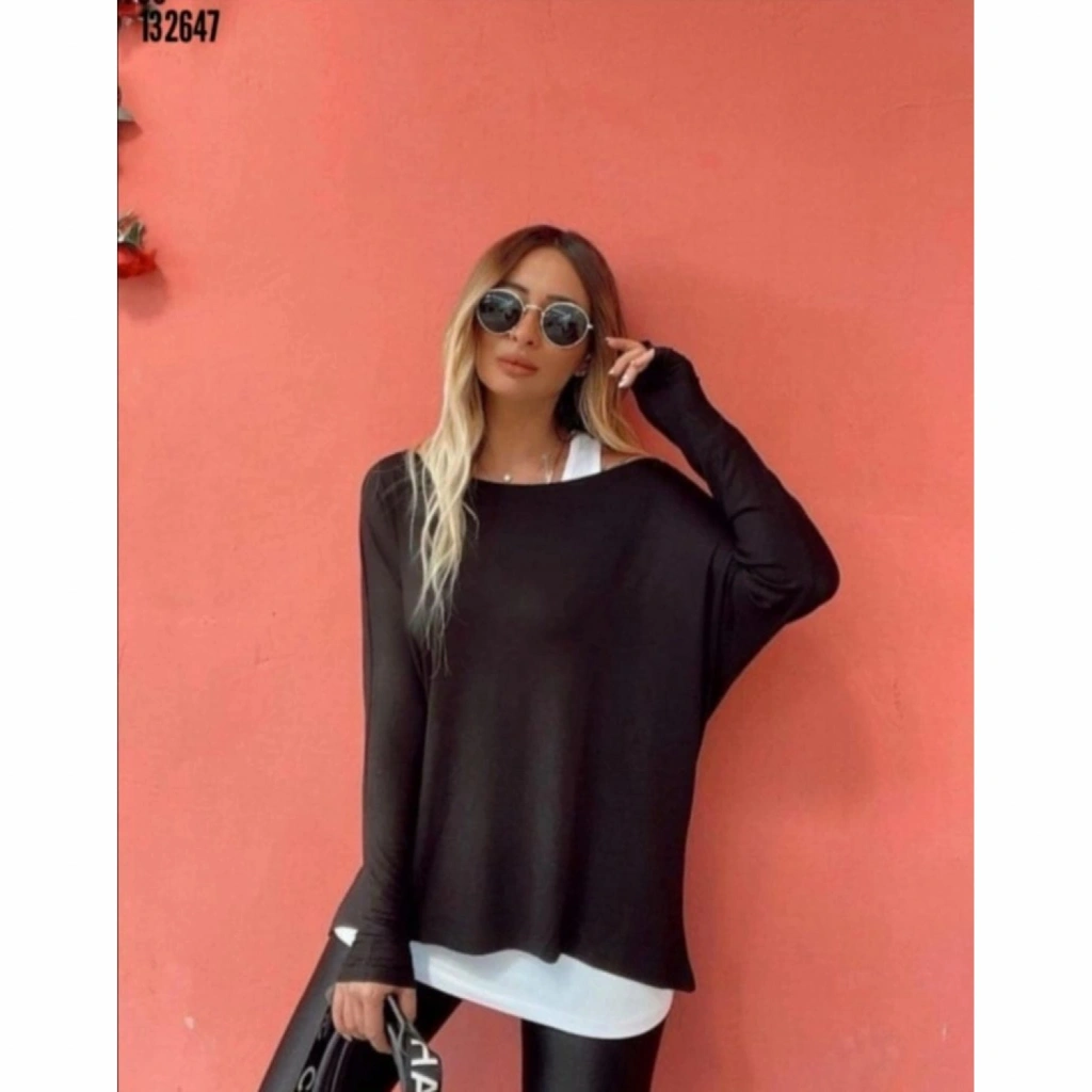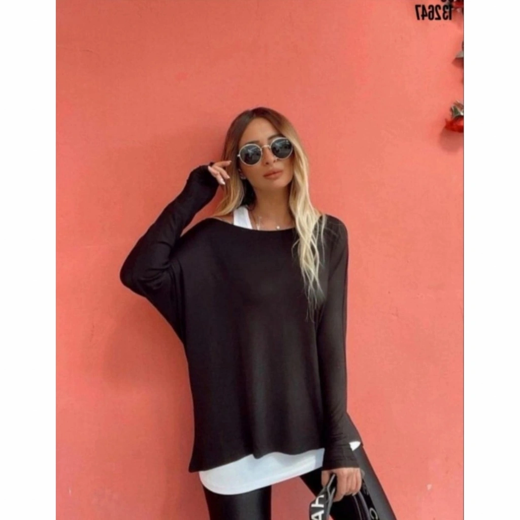 Kadın Uzun Kollu Tek Omuzdan Açık çilek Bluz Ve Viskon Atlet Ikili Takım