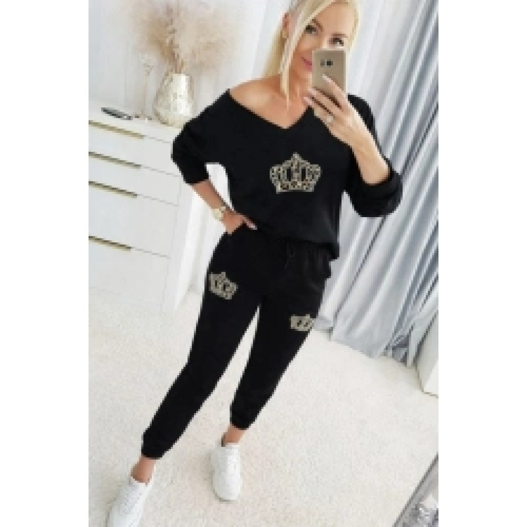 Kadın Uzun Kollu V Yakalı Desenli Viskon Iki Iplik Bluz Ve Pantolon Ikili Takım