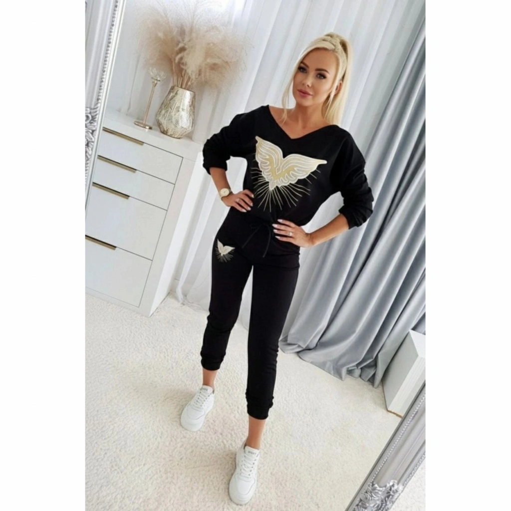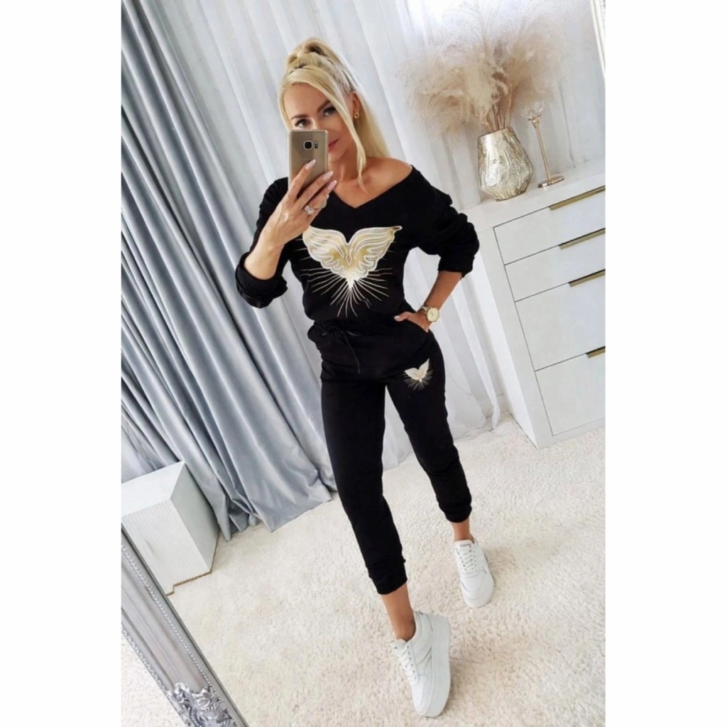 Kadın Uzun Kollu V Yakalı Desenli Viskon Iki Iplik Bluz Ve Pantolon Ikili Takım