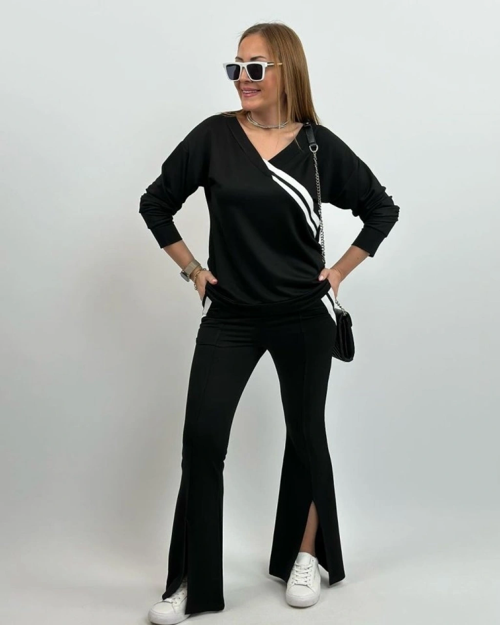Kadın Uzun Kollu V Yakalı şerit Detaylı Viskon Iki Iplik Bluz Ve Pantolon Ikili Takım