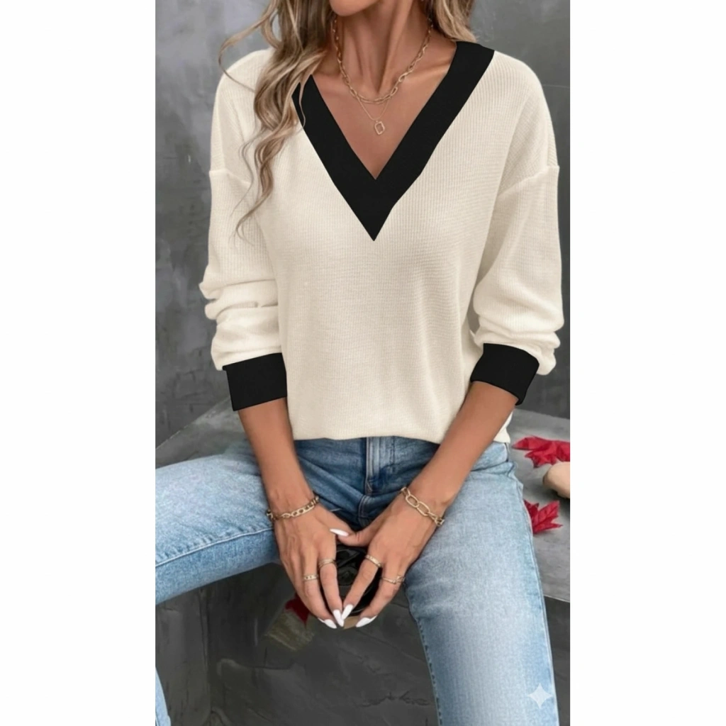 Kadın Uzun Kollu V Yakalı Waffle Bluz