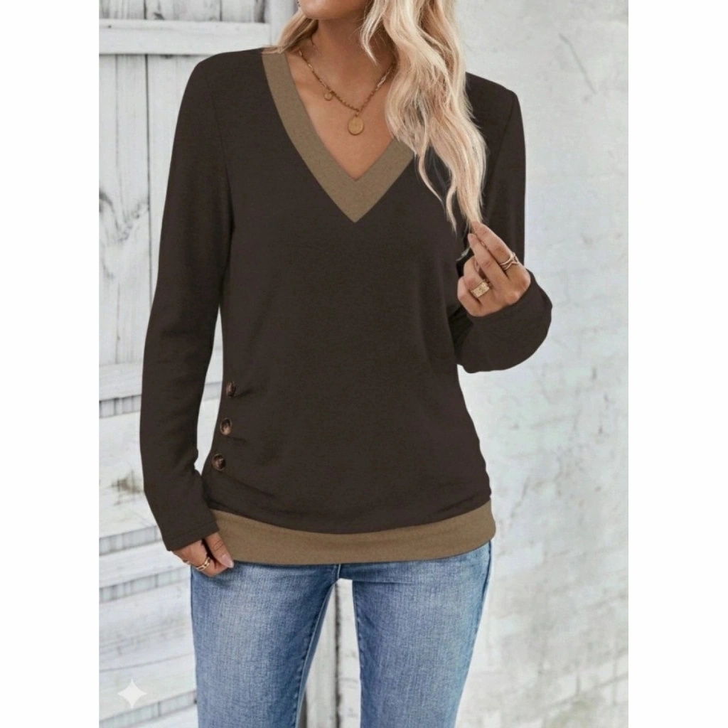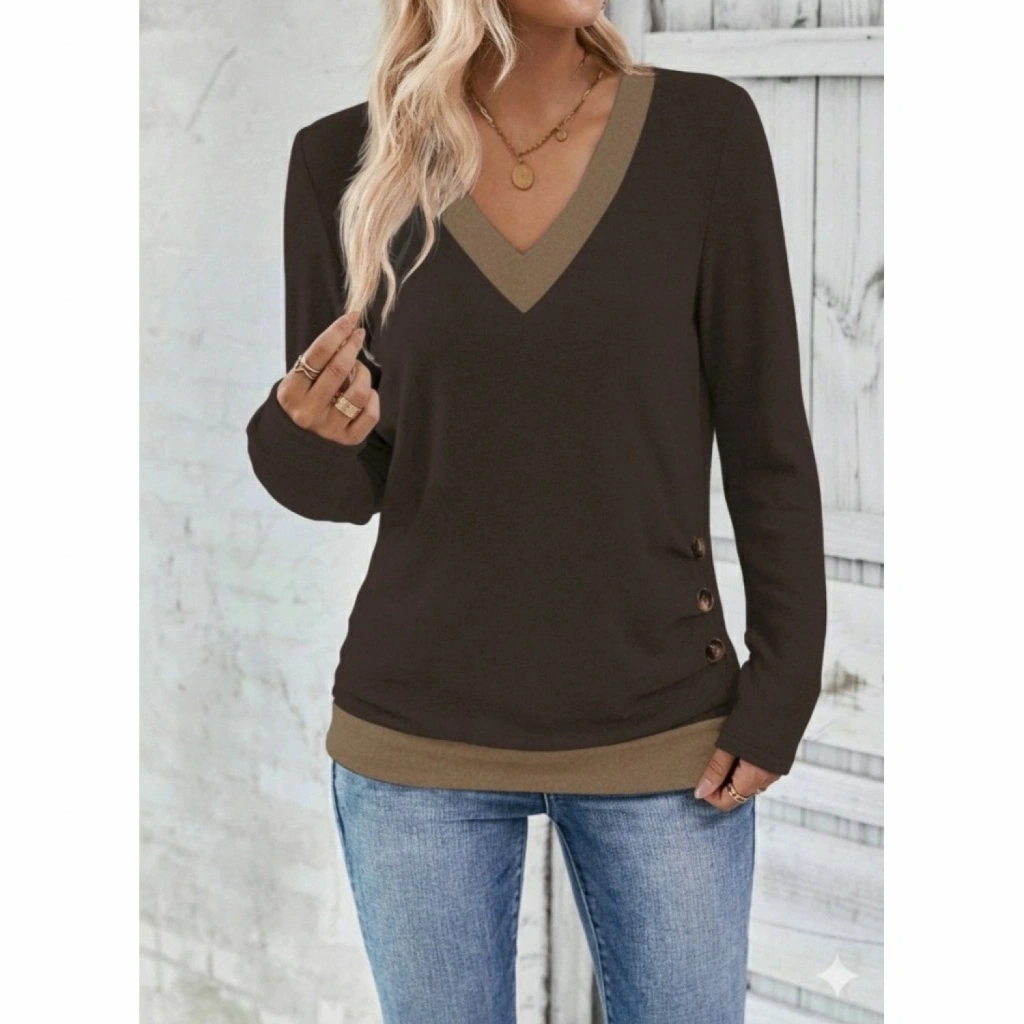 Kadın Uzun Kollu V Yakalı Yandan Düğmeli Yün Viskon Bluz