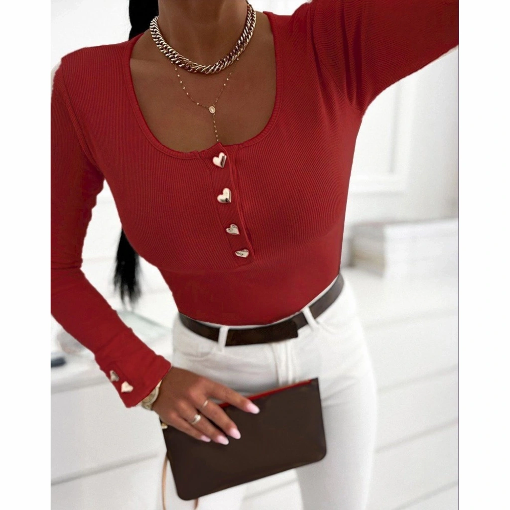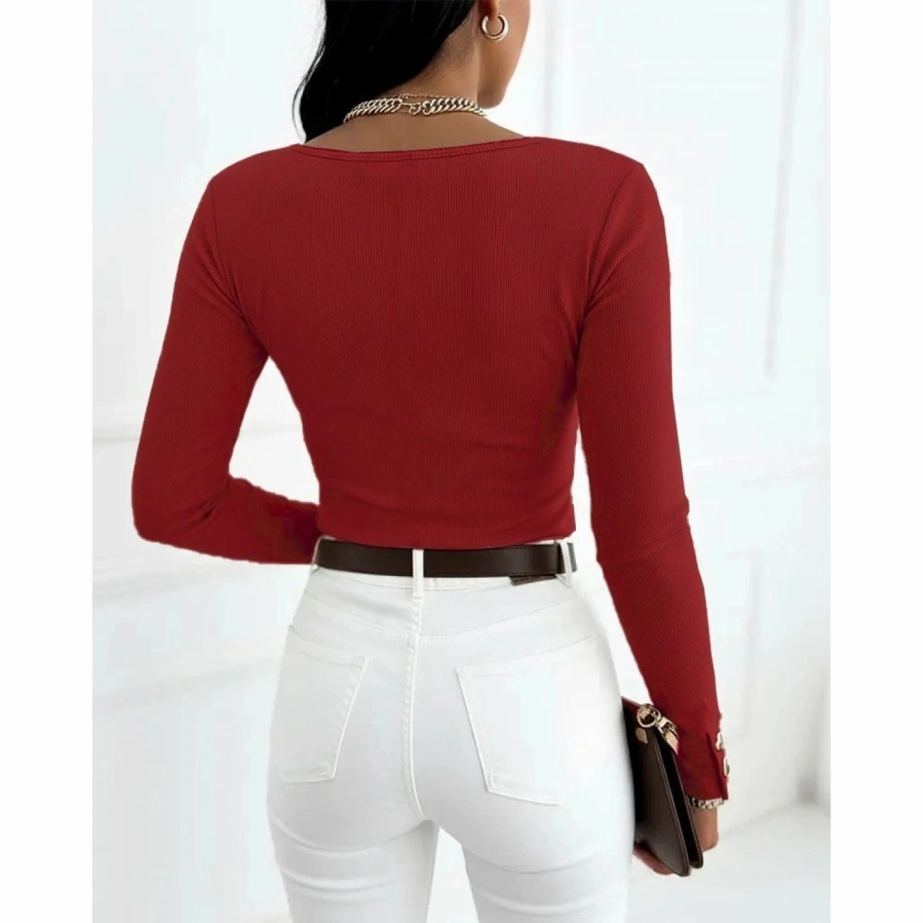 Kadın Uzun Kollu Yakadan Açık Ve Düğme Detaylı Kaşkorse Bluz