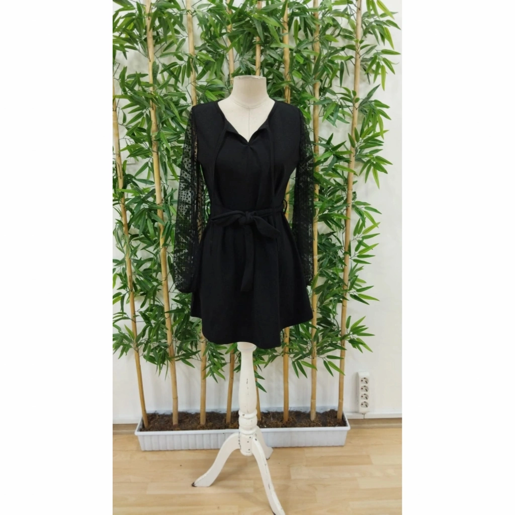 Kadın Uzun Kollu Yakadan Bağcıklı Belden Kuşaklı Ithal Krep Elbise