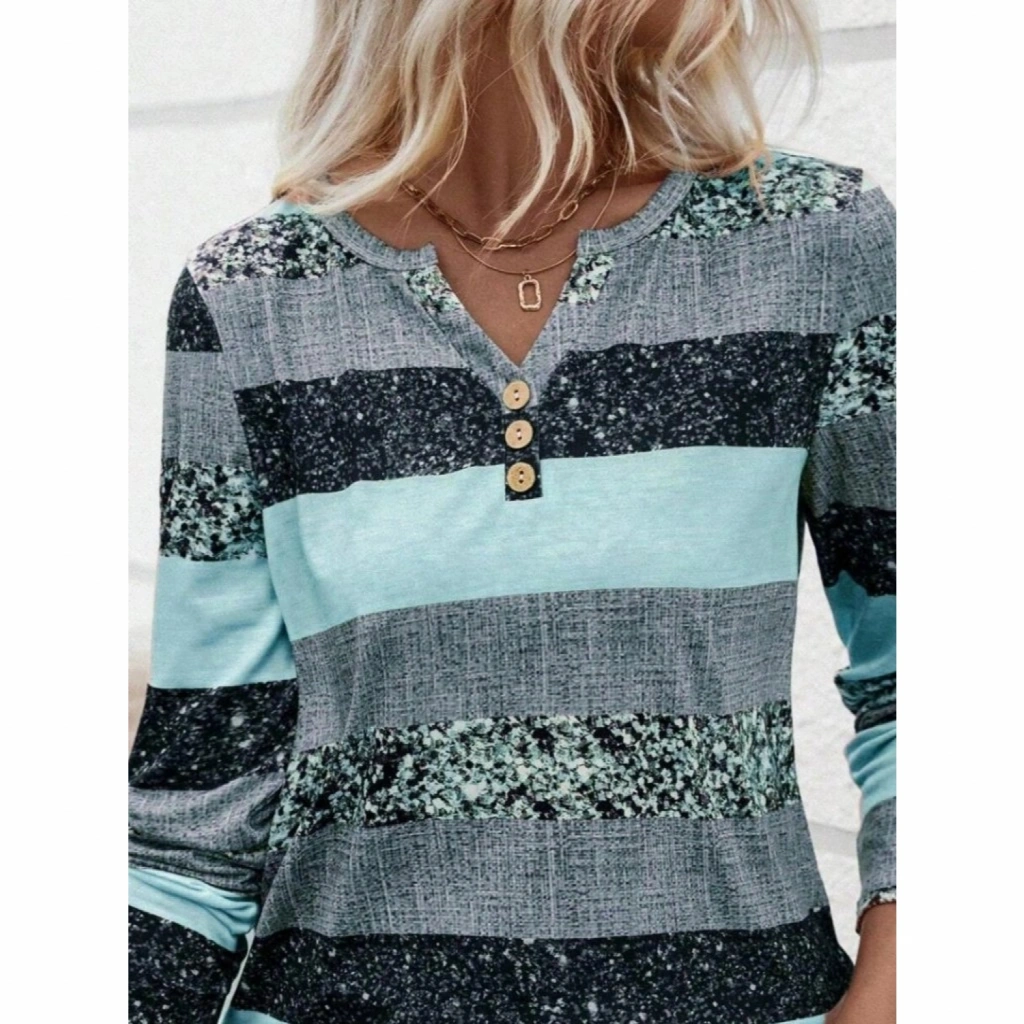 Kadın Uzun Kollu Yakadan Düğmeli çizgili Desenli Süprem Bluz