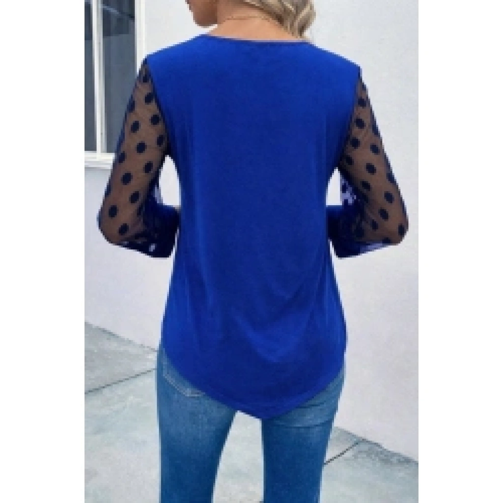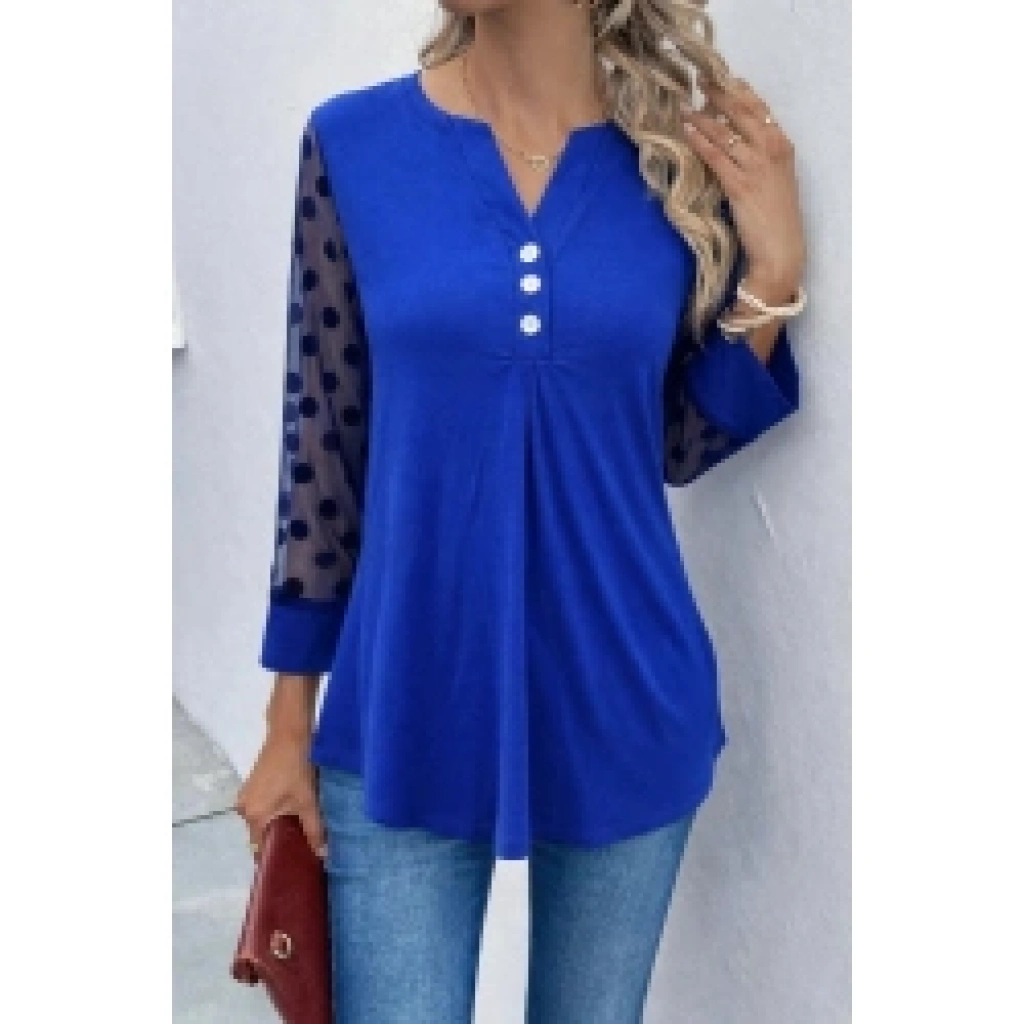 Kadın Uzun Kollu Yakadan Düğmeli Kolları Tül Detaylı Viskon Bluz
