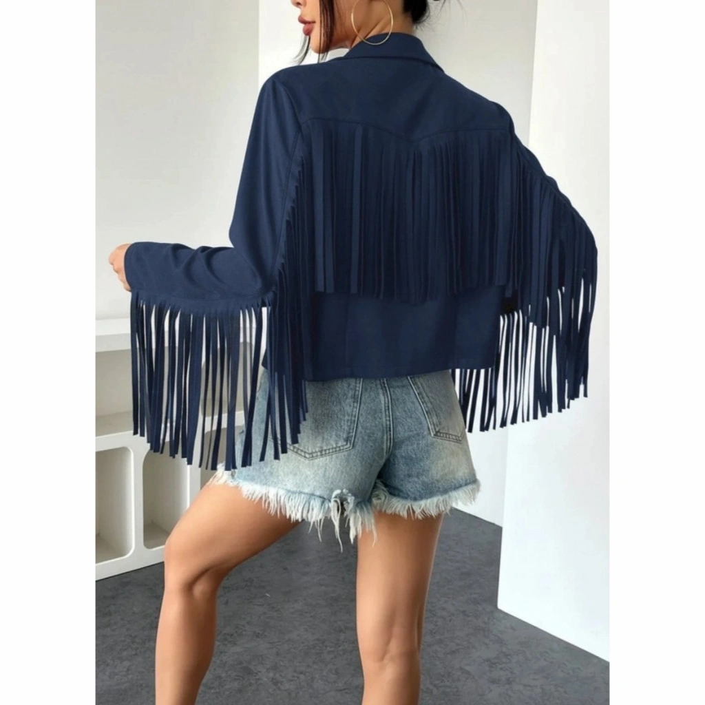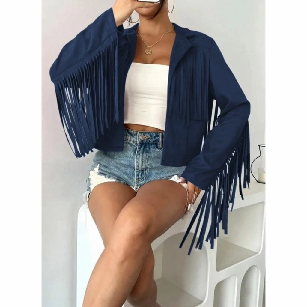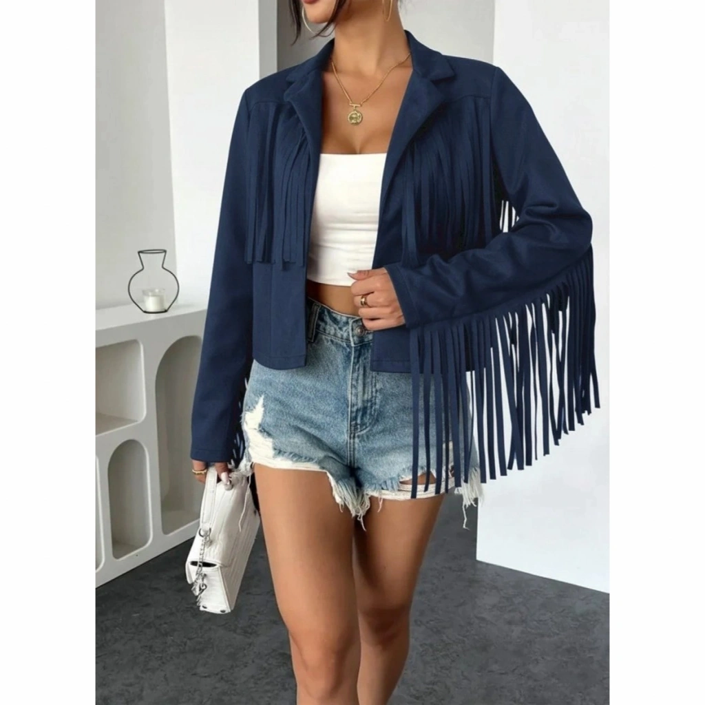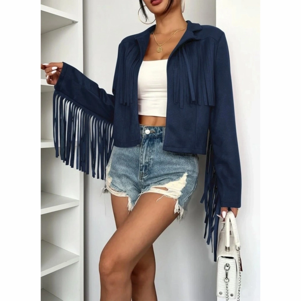 Kadın Uzun Kollu Yakalı Kısa Püsküllü Süet Ceket