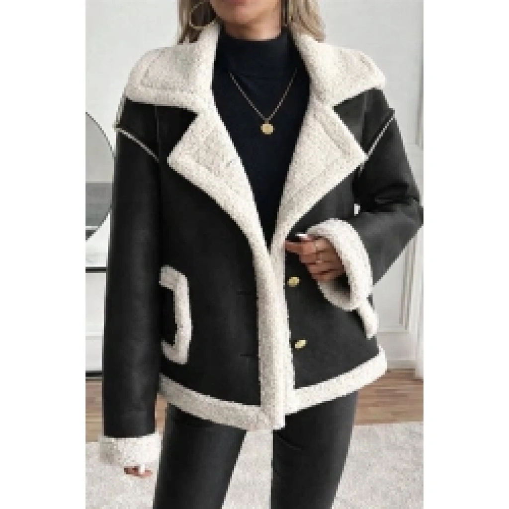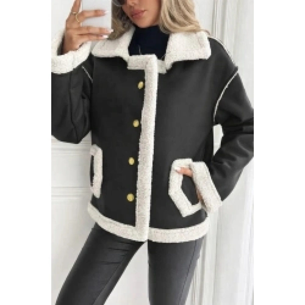 Kadın Uzun Kollu Yakalı önden Düğmeli Cep Detaylı Süet Ceket