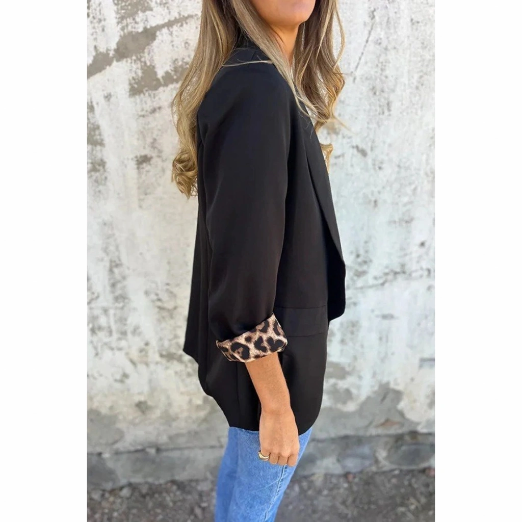 Kadın Uzun Kollu Yakalı önü Açık Leopar Desen Detaylı Astarlı Atlas Ceket