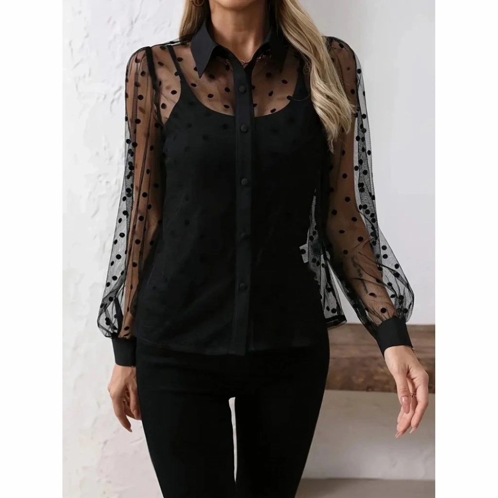 Kadın Uzun Kollu Yakalı şeffaf Tül Detaylı Ve Viskon Atlet Ikili Takım