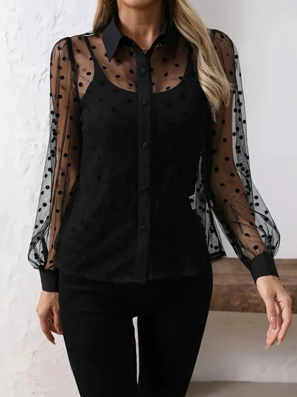 Kadın Uzun Kollu Yakalı şeffaf Tül Detaylı Ve Viskon Atlet Ikili Takım
