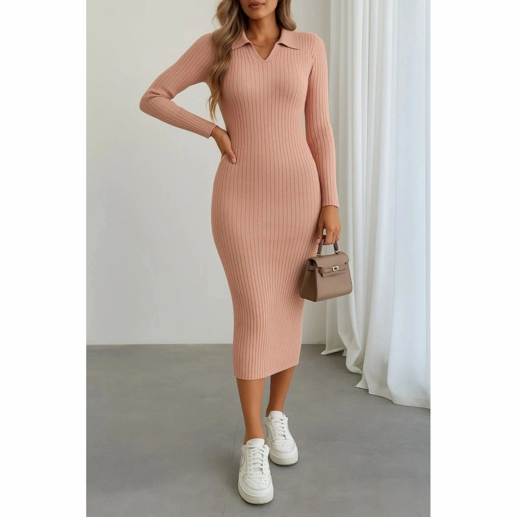 Kadın Uzun Kollu Yakalı Triko Elbise