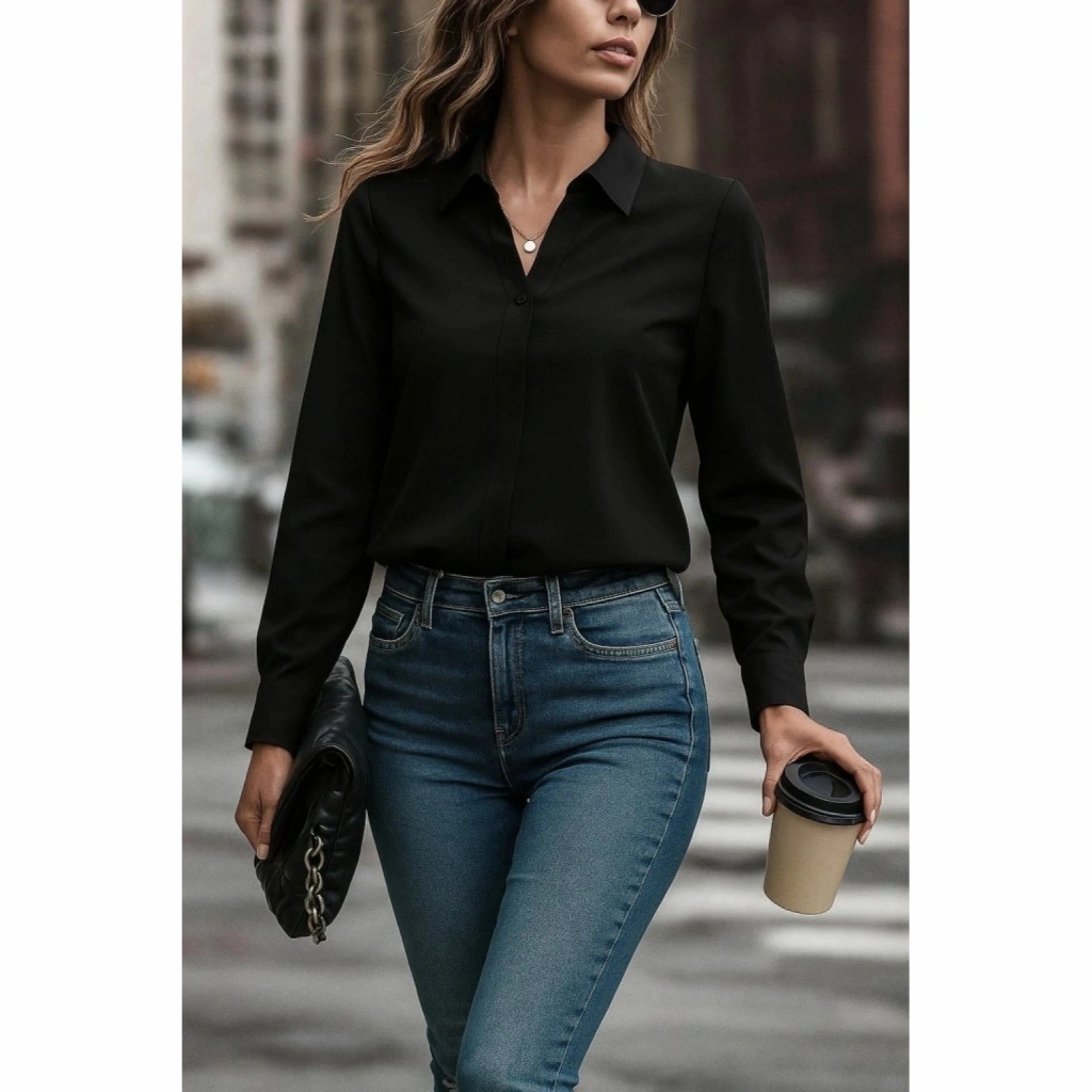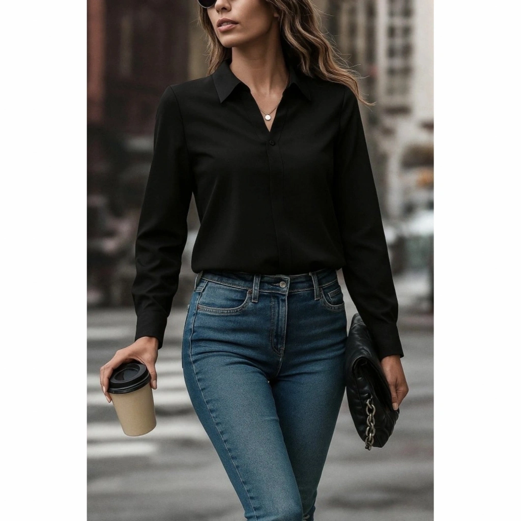 Kadın Uzun Kollu Yakalı Trikoton Gömlek