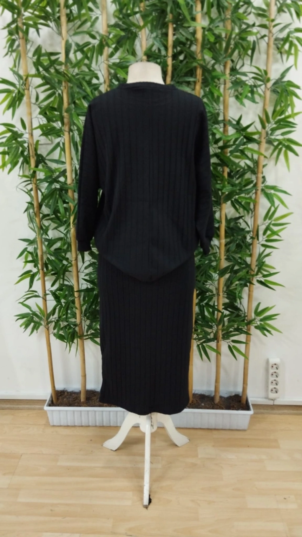 Kadın Uzun Kollu Yakası Açık Yarasa Kollu şardonlu Kaşkorse Bluz Ve Etek Takım