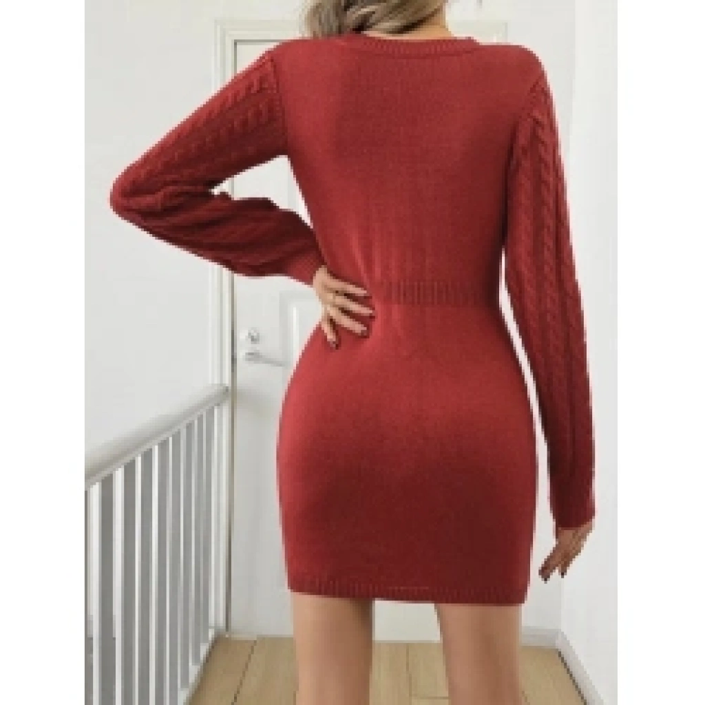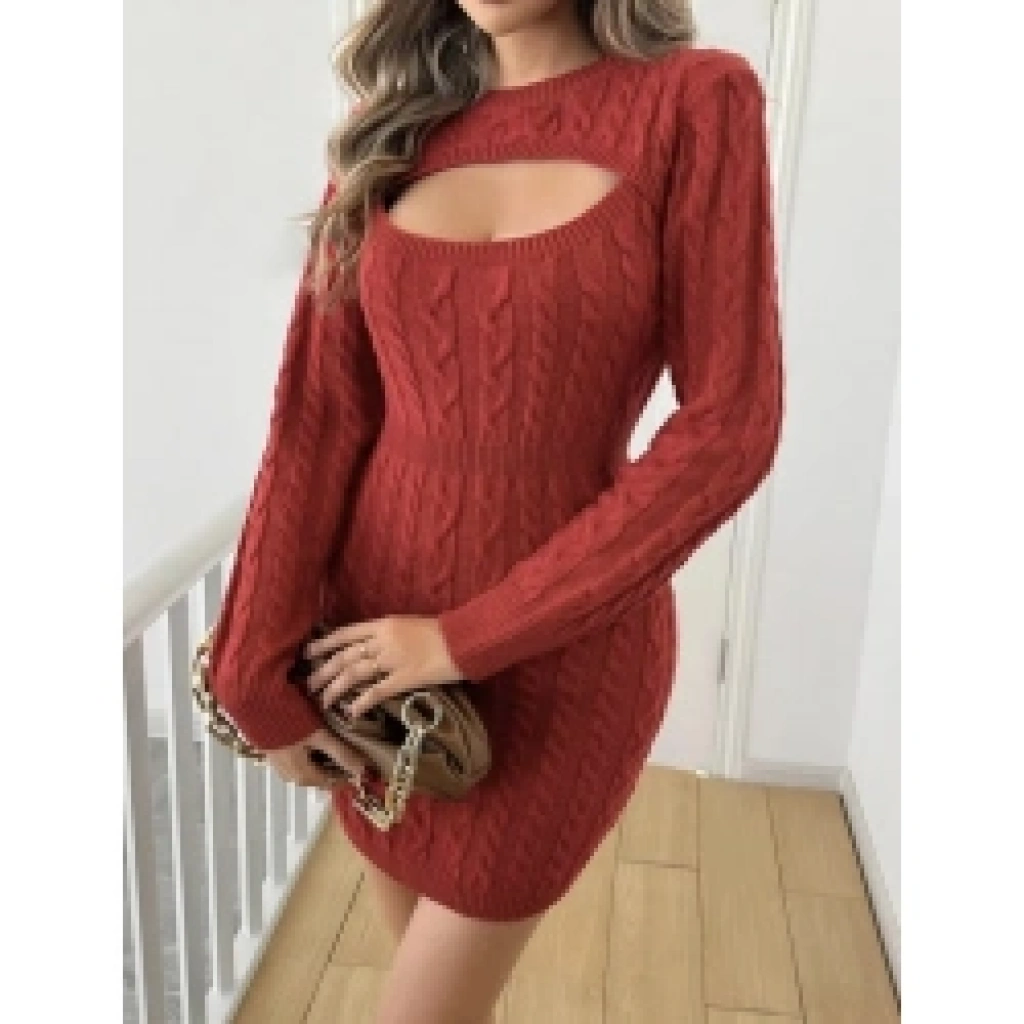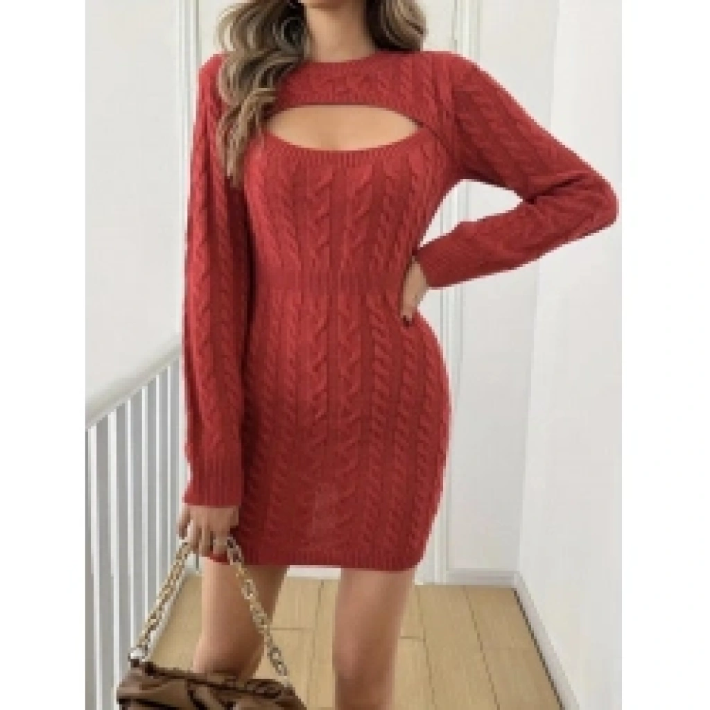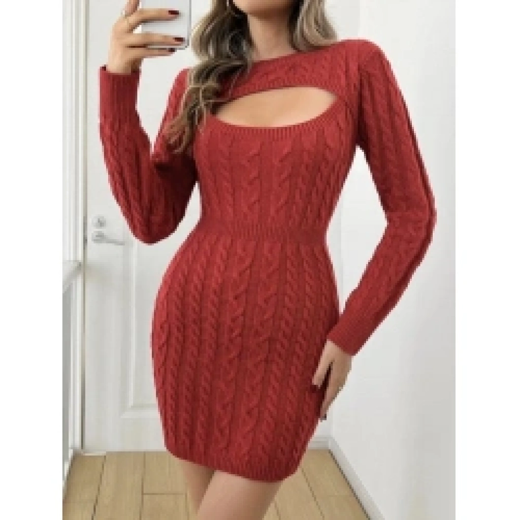 Kadın Uzun Kollu Yarı Balıkçı Yaka Pencere Göğüs Detay Mini Triko Elbise