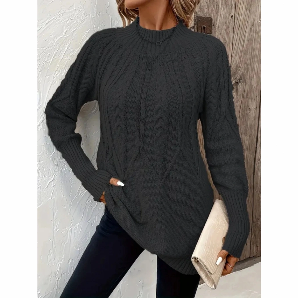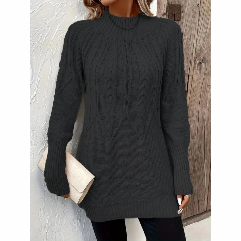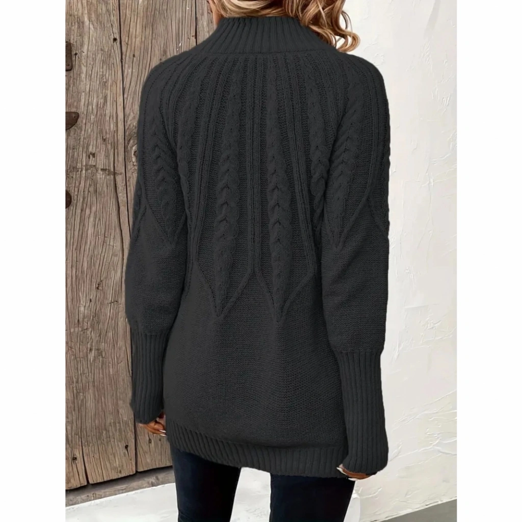 Kadın Uzun Kollu Yarı Balıkçı Yaka Triko Bluz