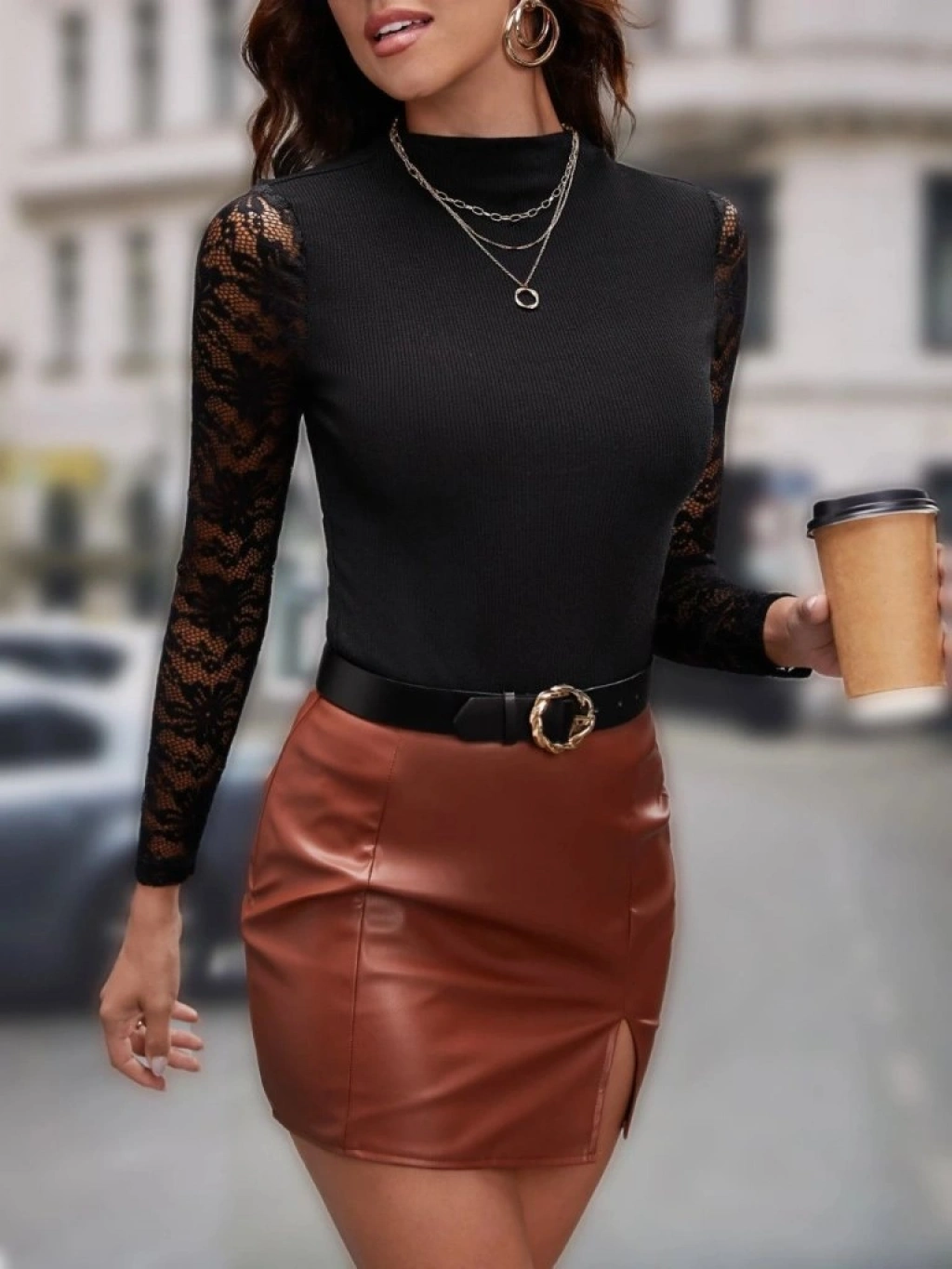 Kadın Uzun Kollu Yarı Balıkçı Yaka Tüllü Kaşkorse Bluz
