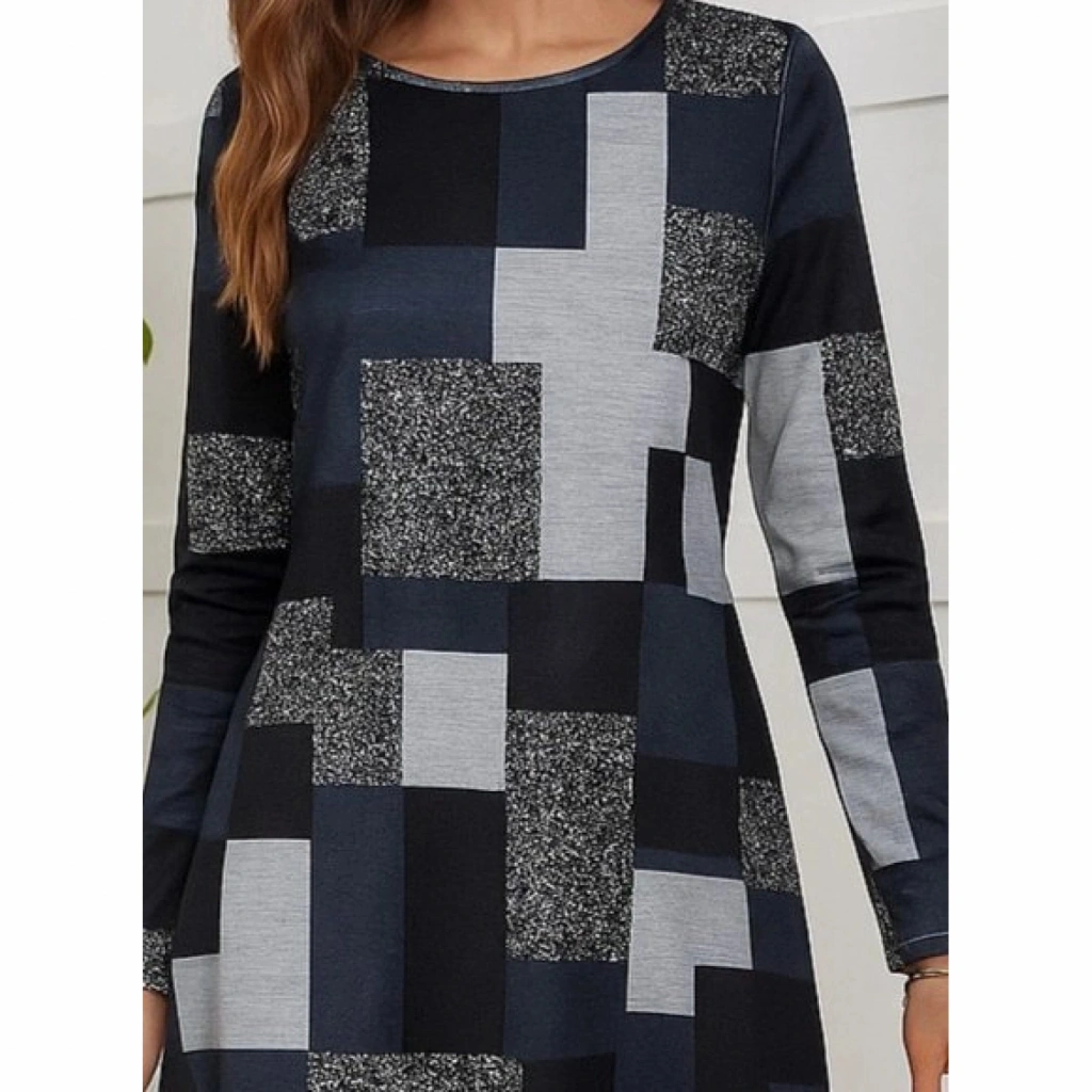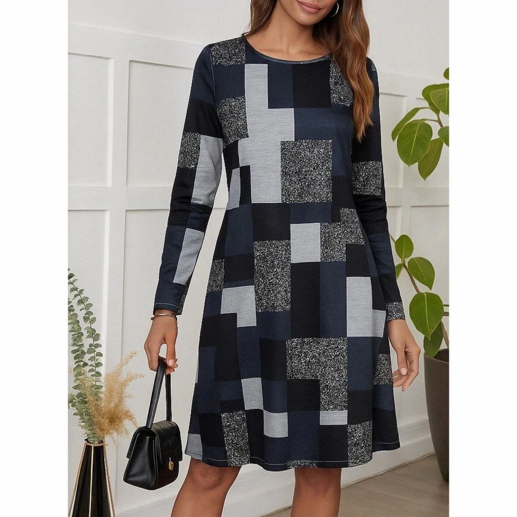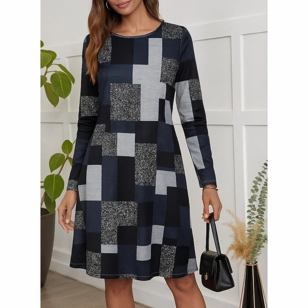 Kadın Uzun Kollu Yuvarlak Yaka Geometrik Süprem Elbise
