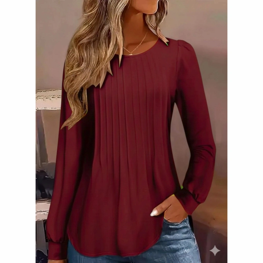 Kadın Uzun Kollu Yuvarlak Yaka Nervürlü Bluz