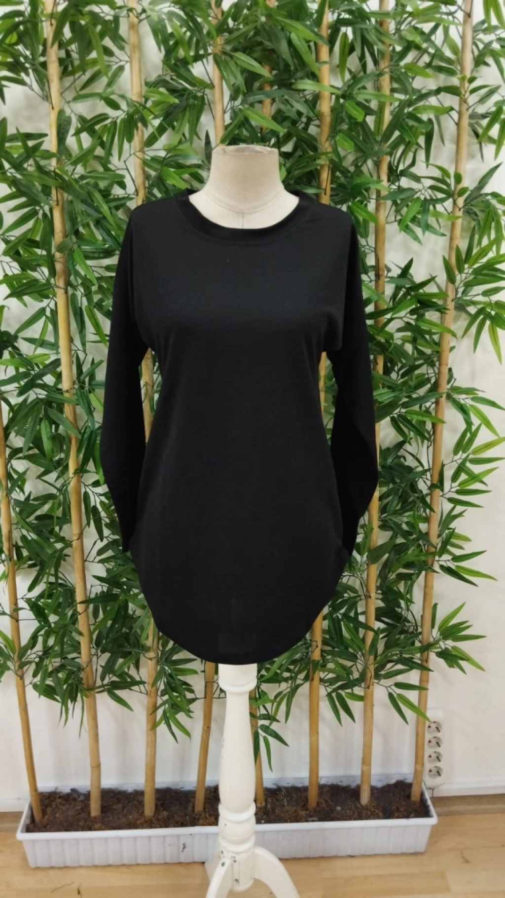 Kadın Uzun Kollu Yuvarlak Yaka Salaş Iki Iplik Bluz