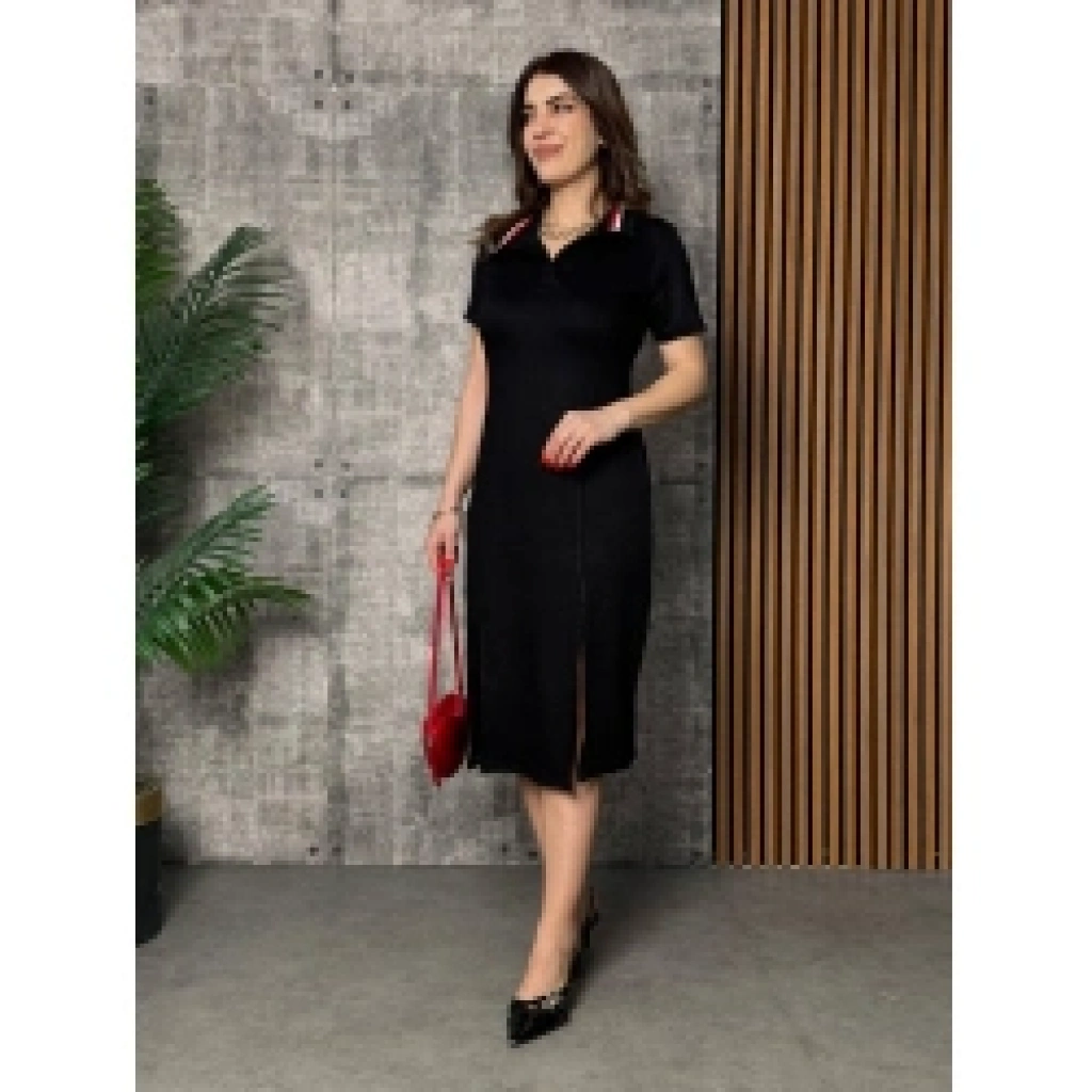 Kadın Yaka Ribanalı Çift Yırtmaçlı Elbise