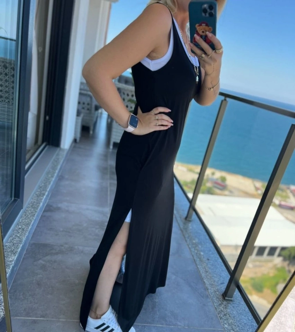 Kadın Yırtmaç Detaylı Viskon Kumaş Maxi Boy Cepli Iç Dahil Ikili Elbise