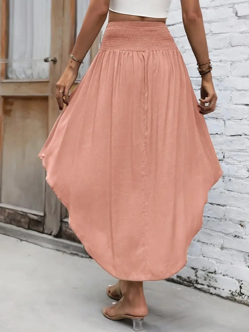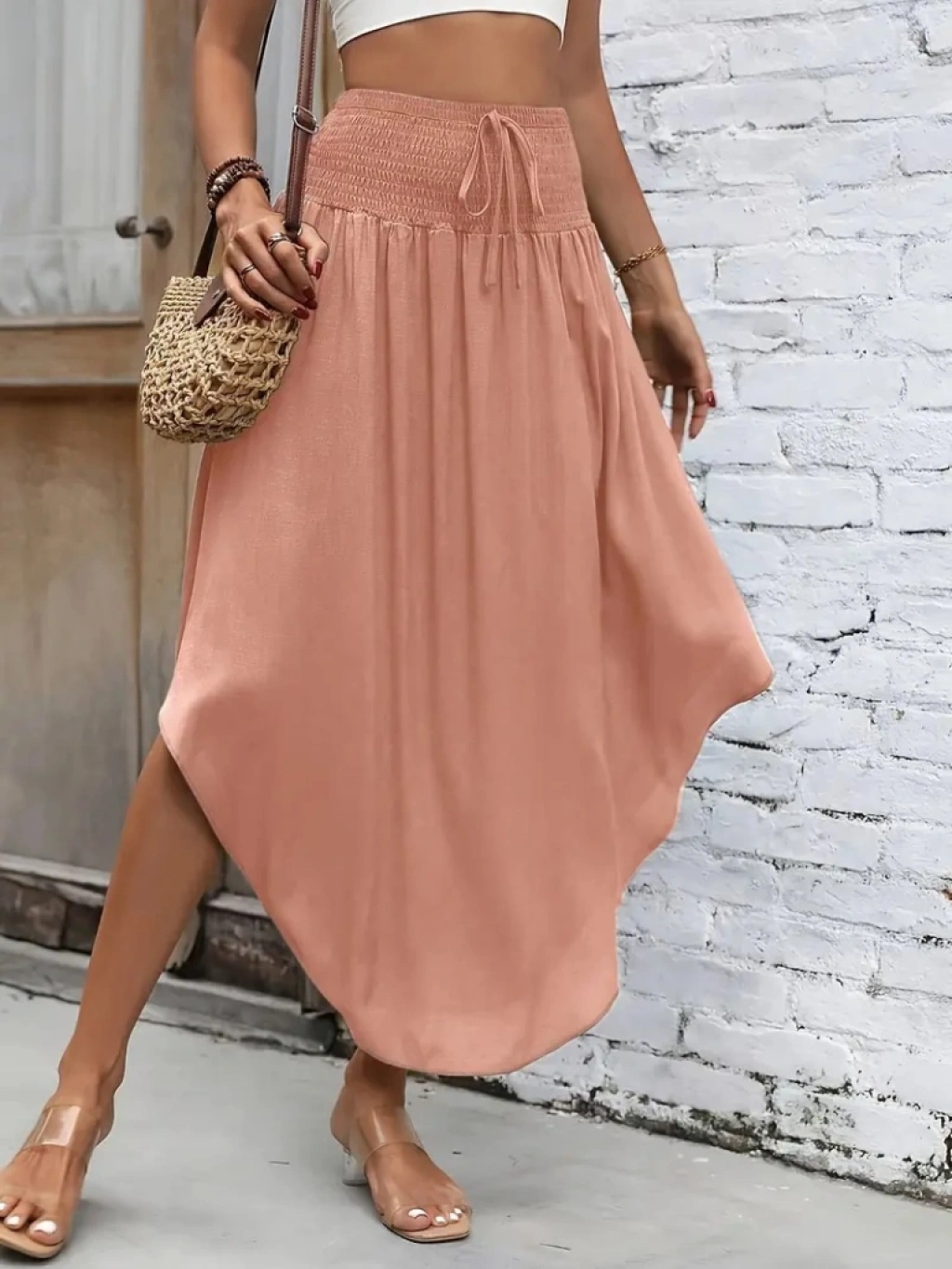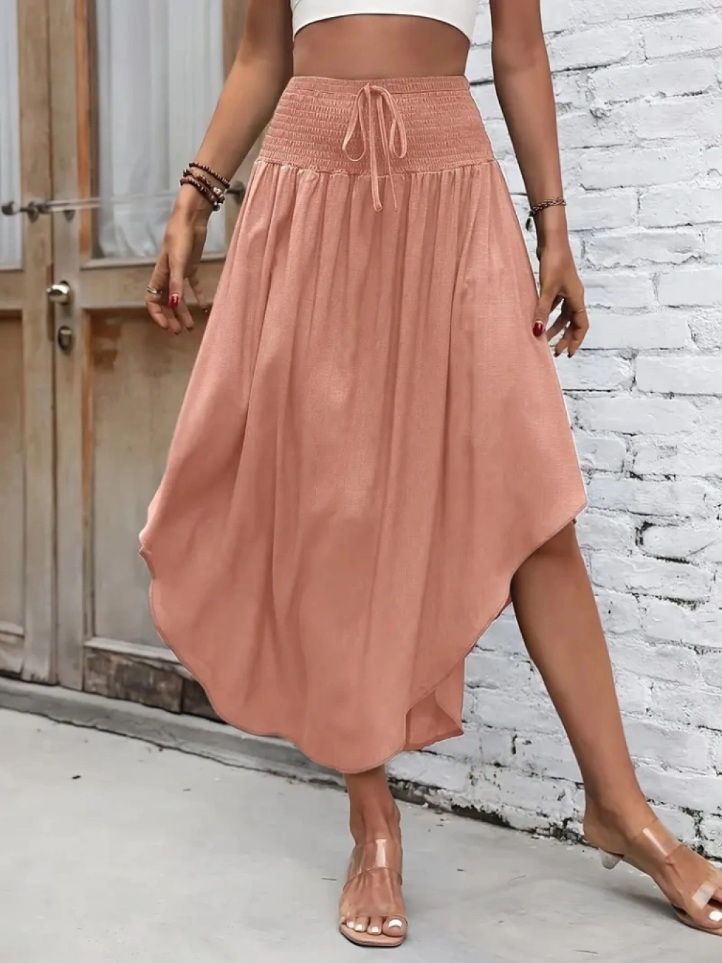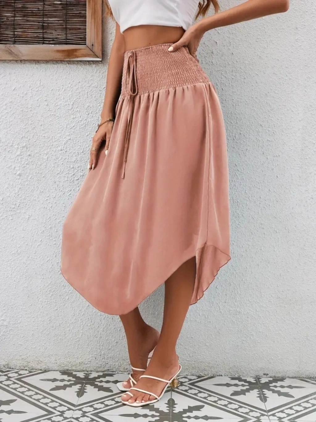 Kadın Yüksek Bel Belden Bağlamalı Asimetrik Kesim Detaylı Sandy Etek
