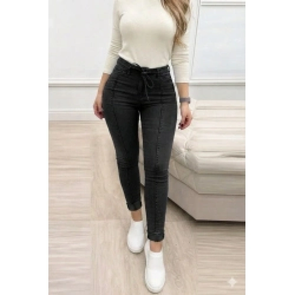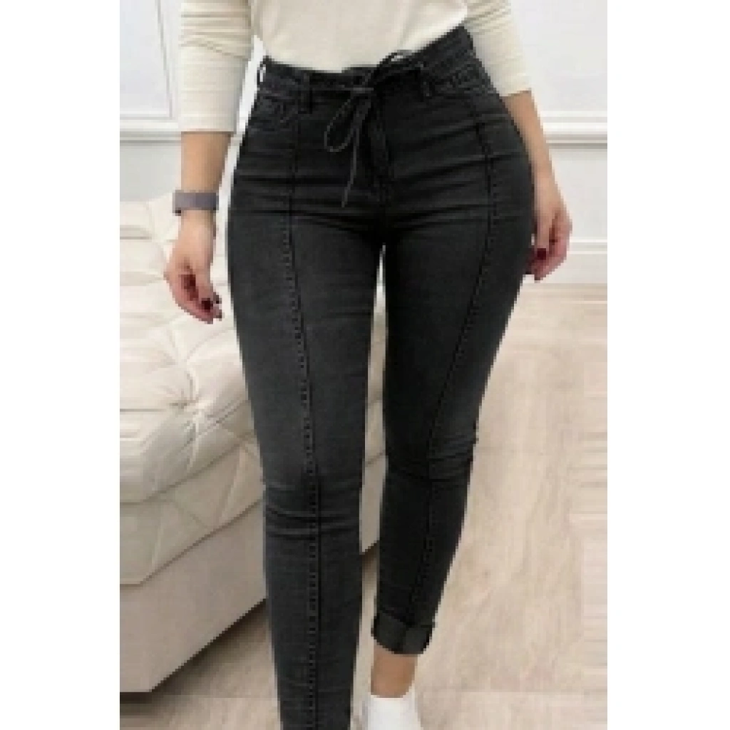Kadın Yüksek Bel Belden Kuşaklı Yırtık Detaylı Kot Pantolon