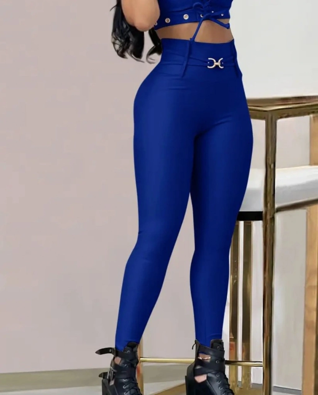 Kadın Yüksek Bel Belden Toka Detaylı Dalgıç Tayt