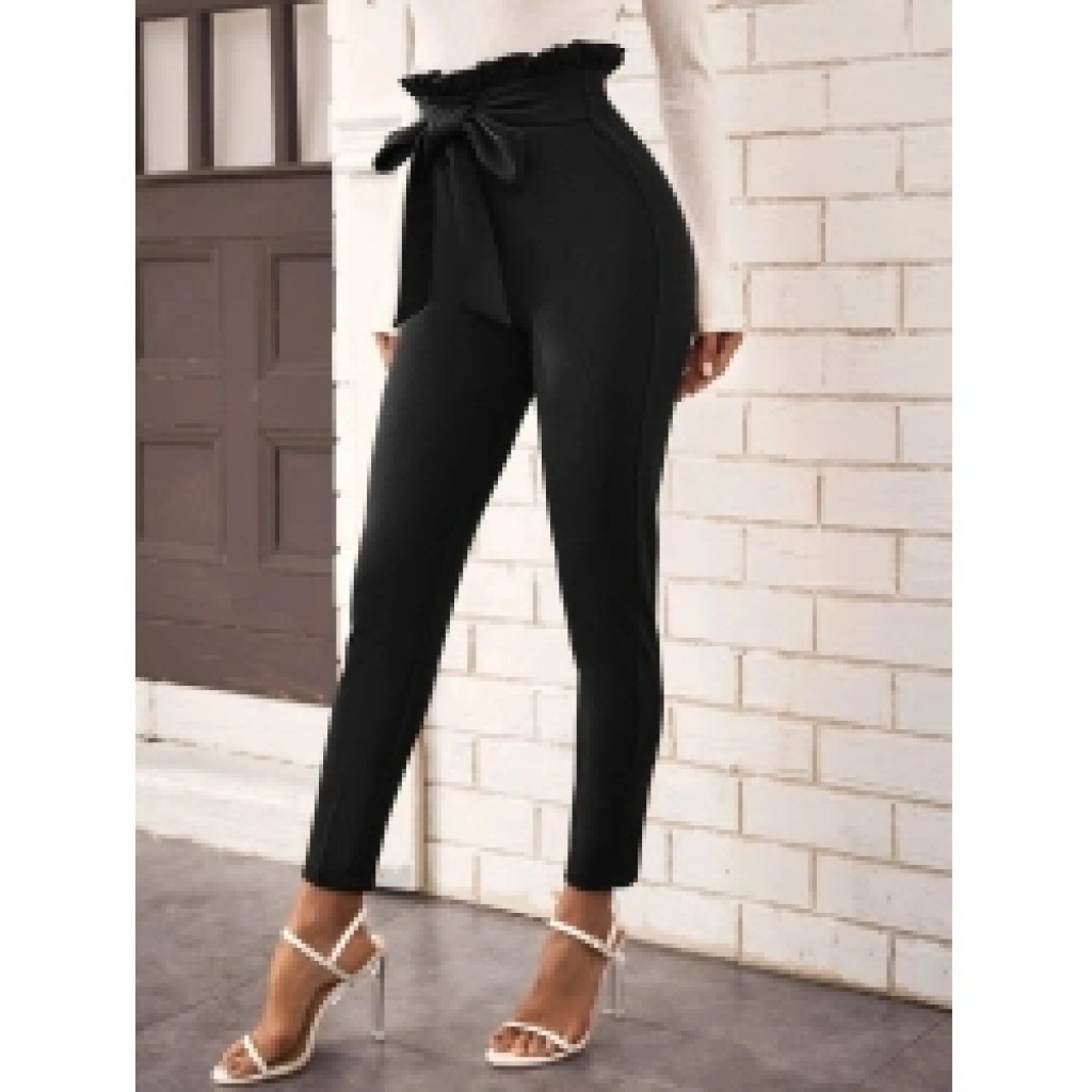 Kadın Yüksek Bel Beli Fırfırlı önden Bağlamalı Ithal Krep Pantolon