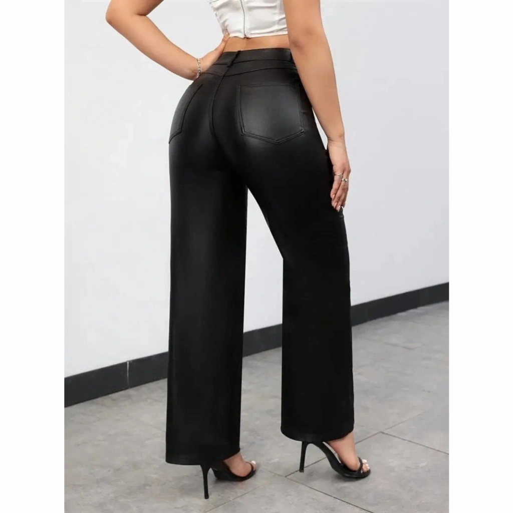 Kadın Yüksek Bel Cepli Deri Pantolon