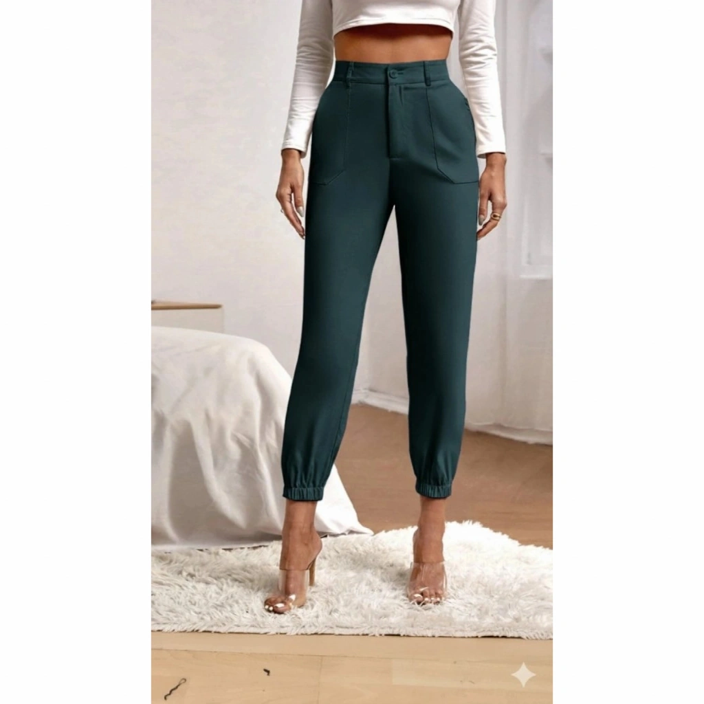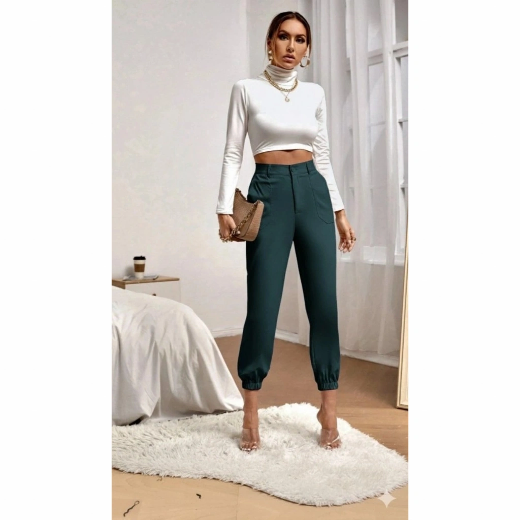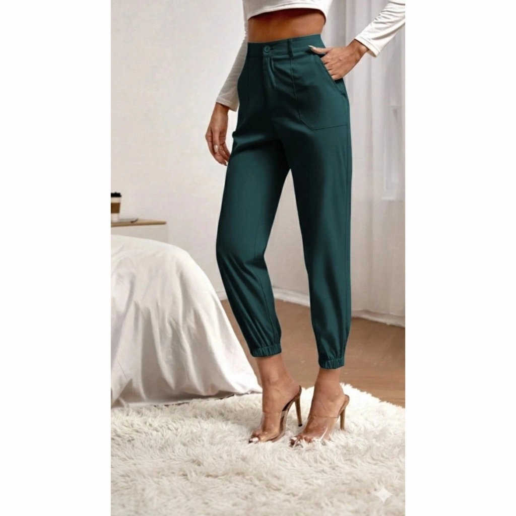 Kadın Yüksek Bel Cepli Paçası Lastikli Ithal Krep Pantolon