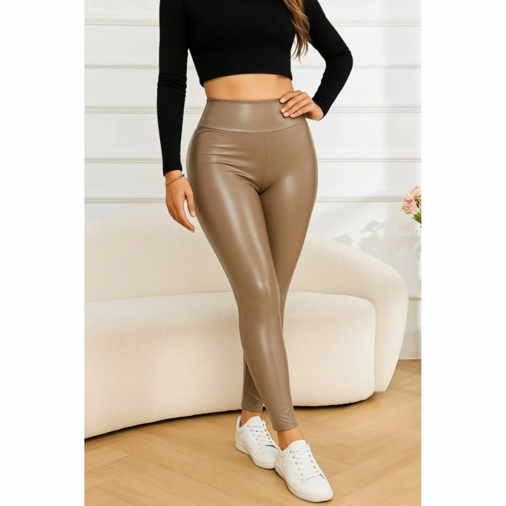 Kadın Yüksek Bel Deri Tayt