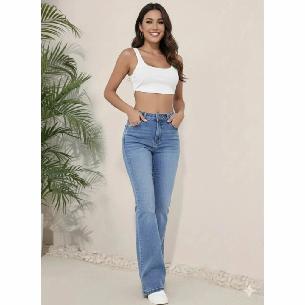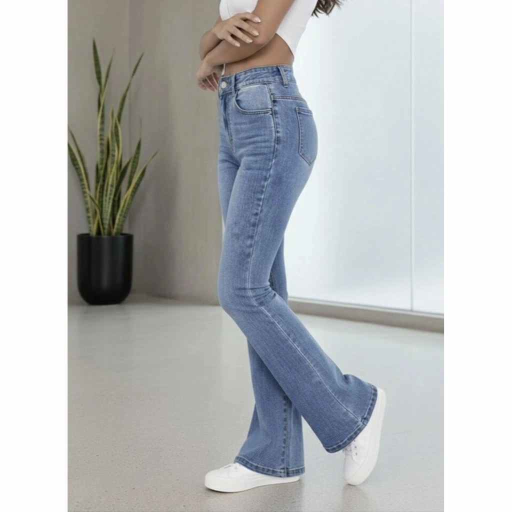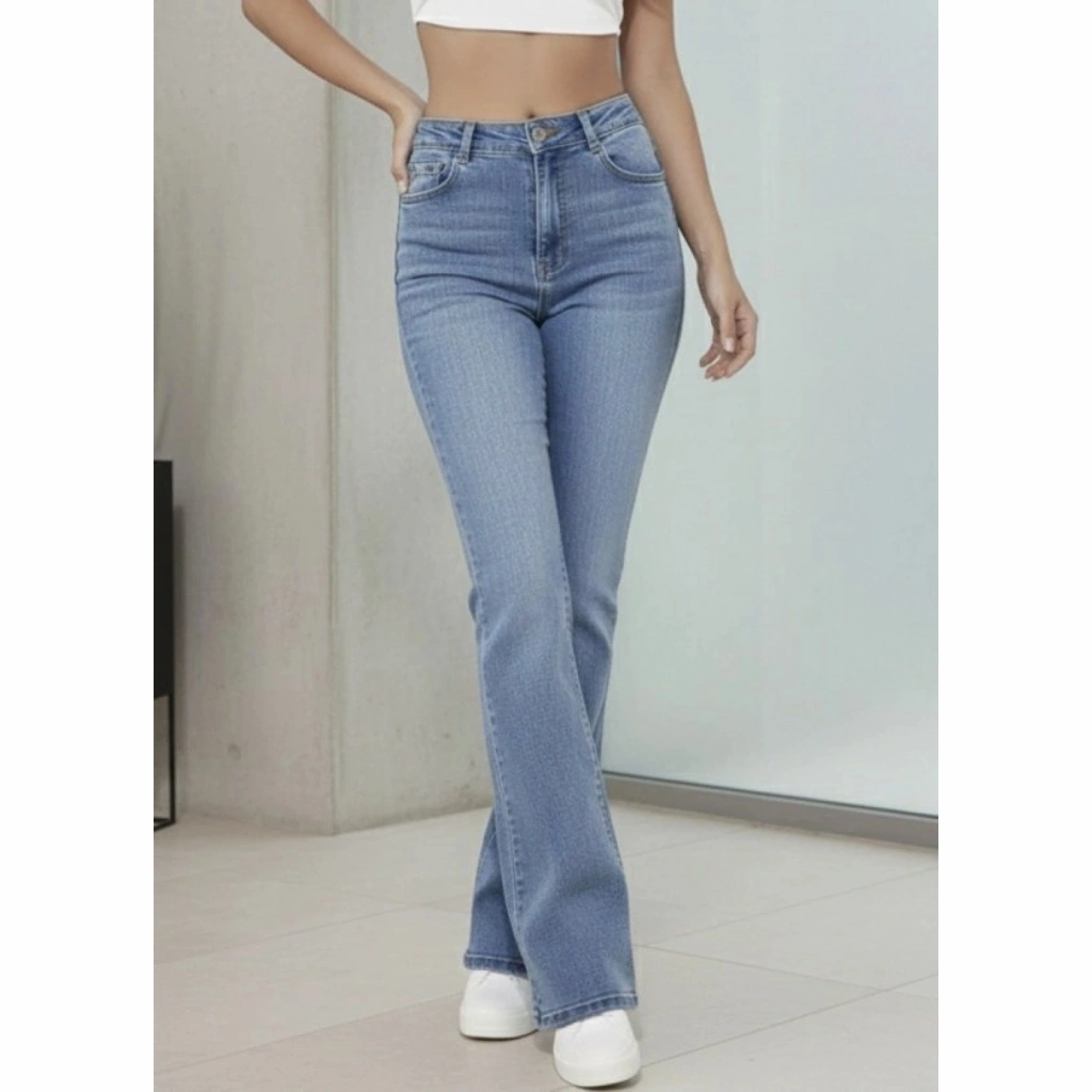 Kadın Yüksek Bel İspanyol Paça Kot Pantolon