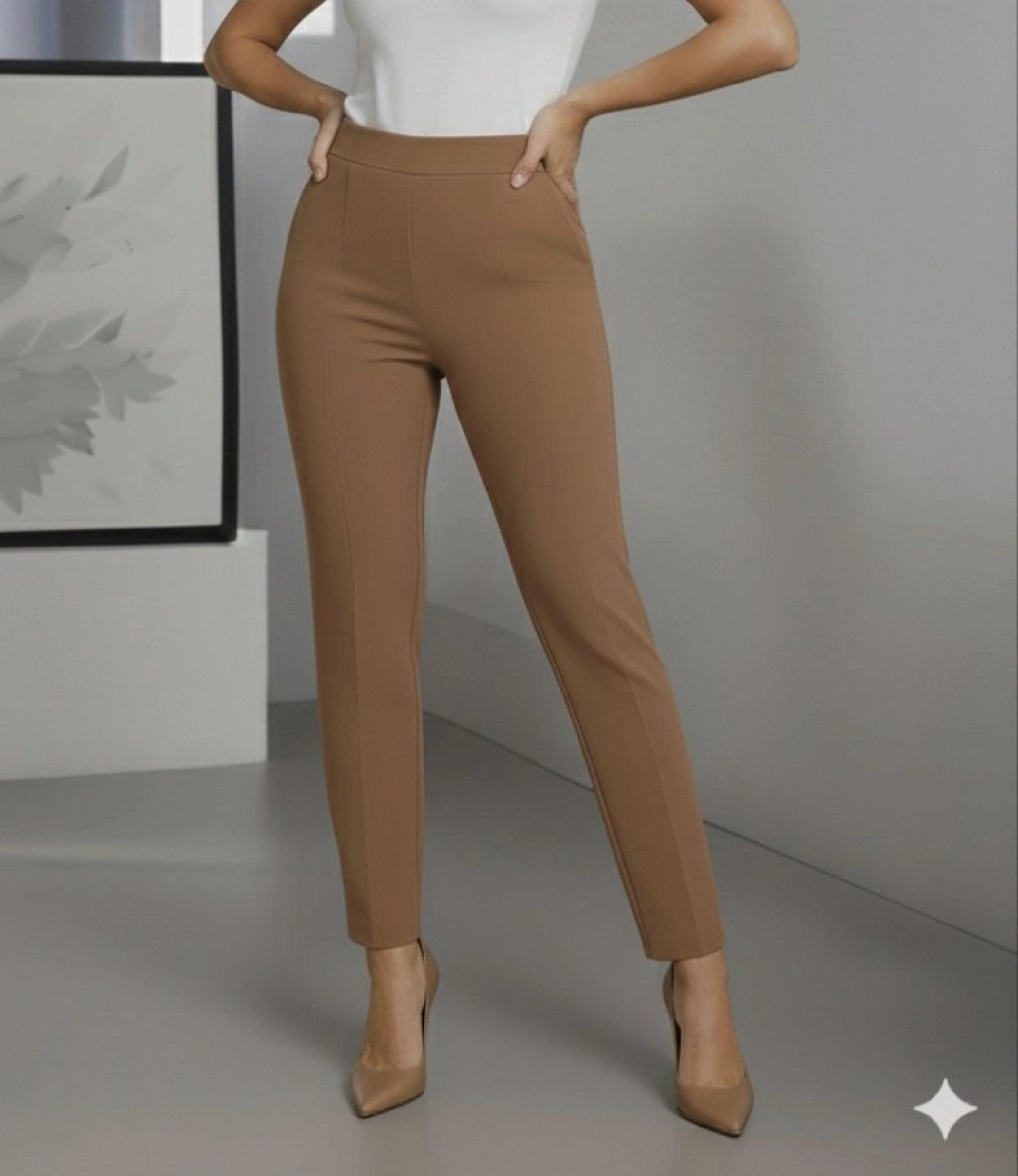 Kadın Yüksek Bel Ithal Krep Pantolon