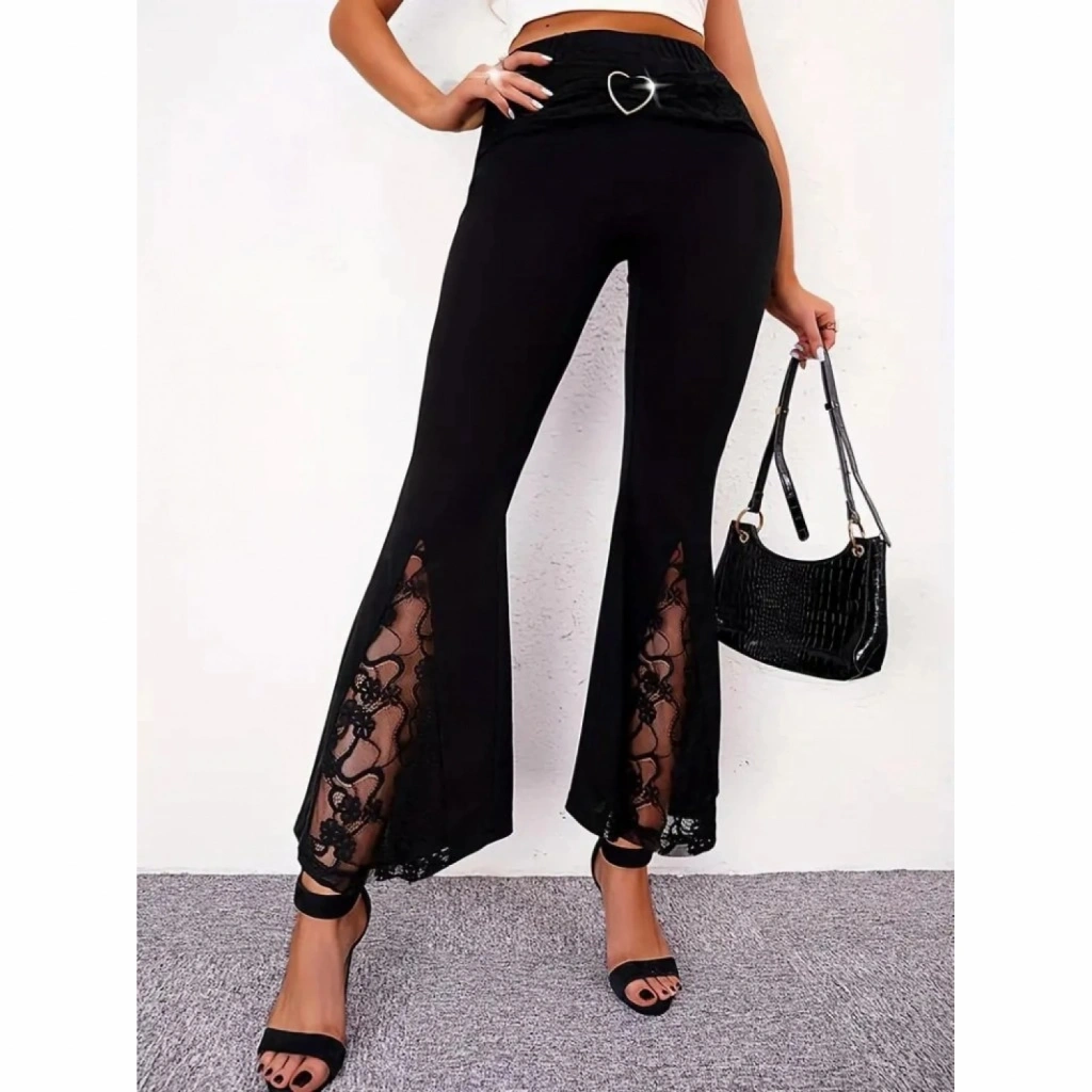Kadın Yüksek Bel Kalpli Kemer Dantel Detaylı Dalgıç Pantolon